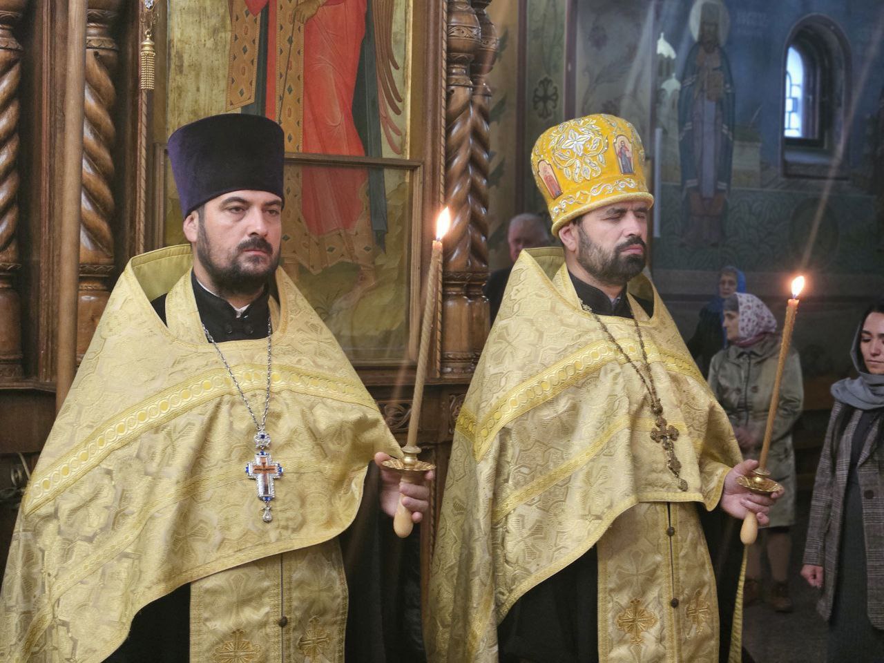 Высокопреосвященнейшему Владыке настоятелю сослужили клирик Воздвиженского прихода иеромонах Иоанн (Трайто) и клирик кафедрального собора Рождества Христова протодиакон Сергий Афтени.