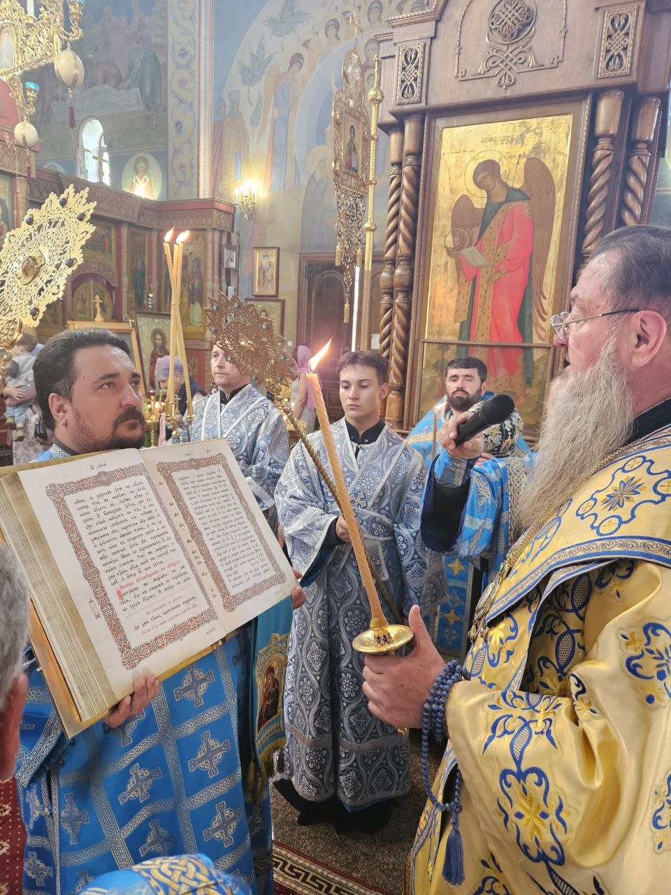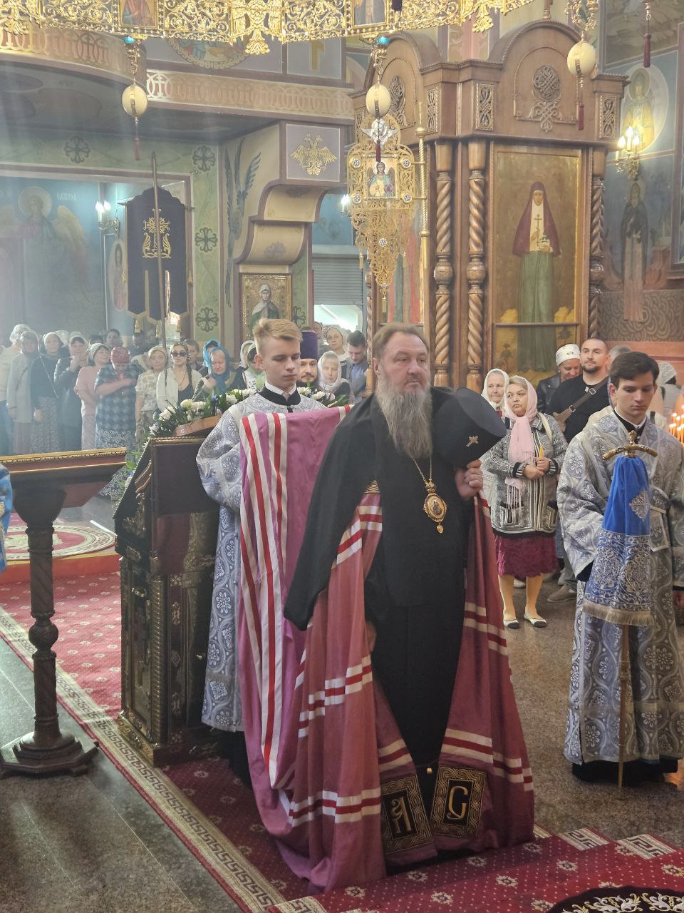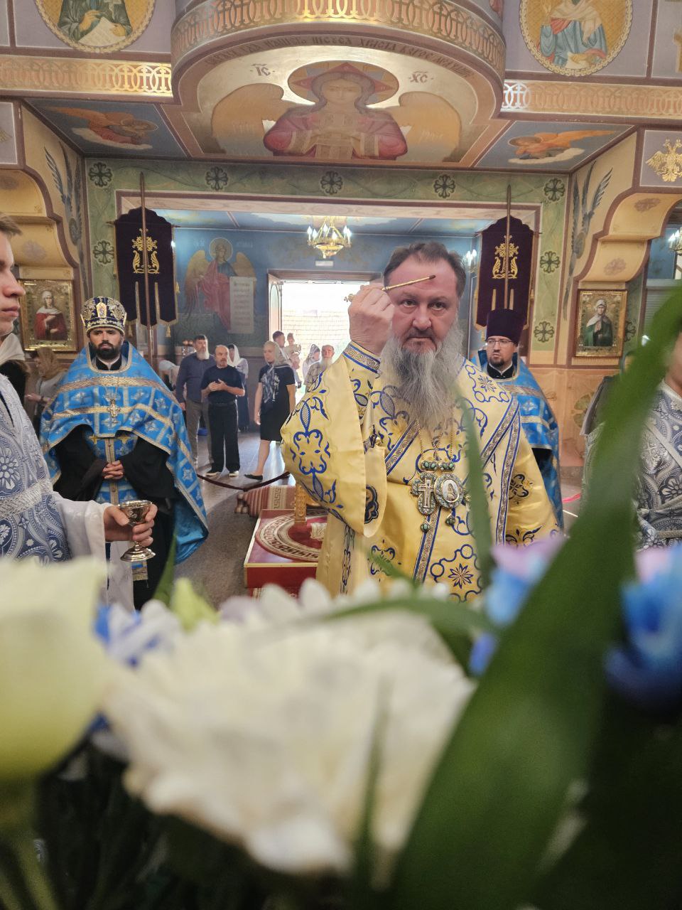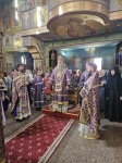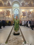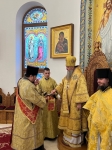 По отпусте Божественной литургии духовенство во главе с Владыкой совершило славление ныне прославляемому Церковью Архистратигу Божию Михаилу пред его честны́м образом.