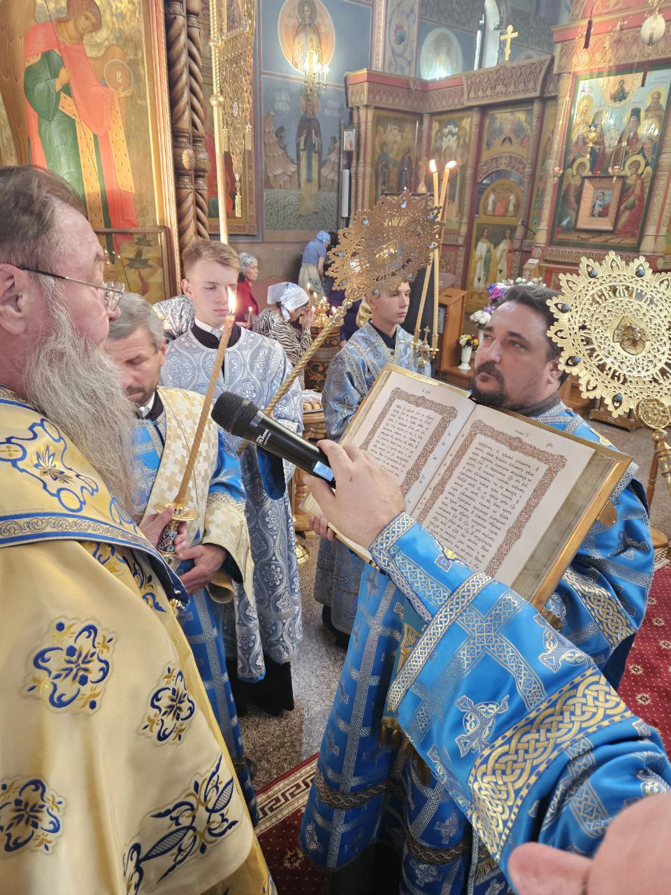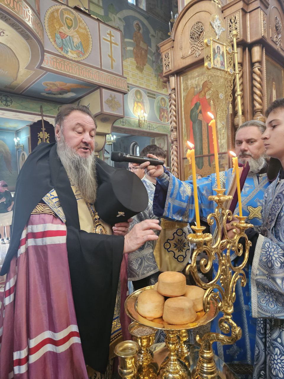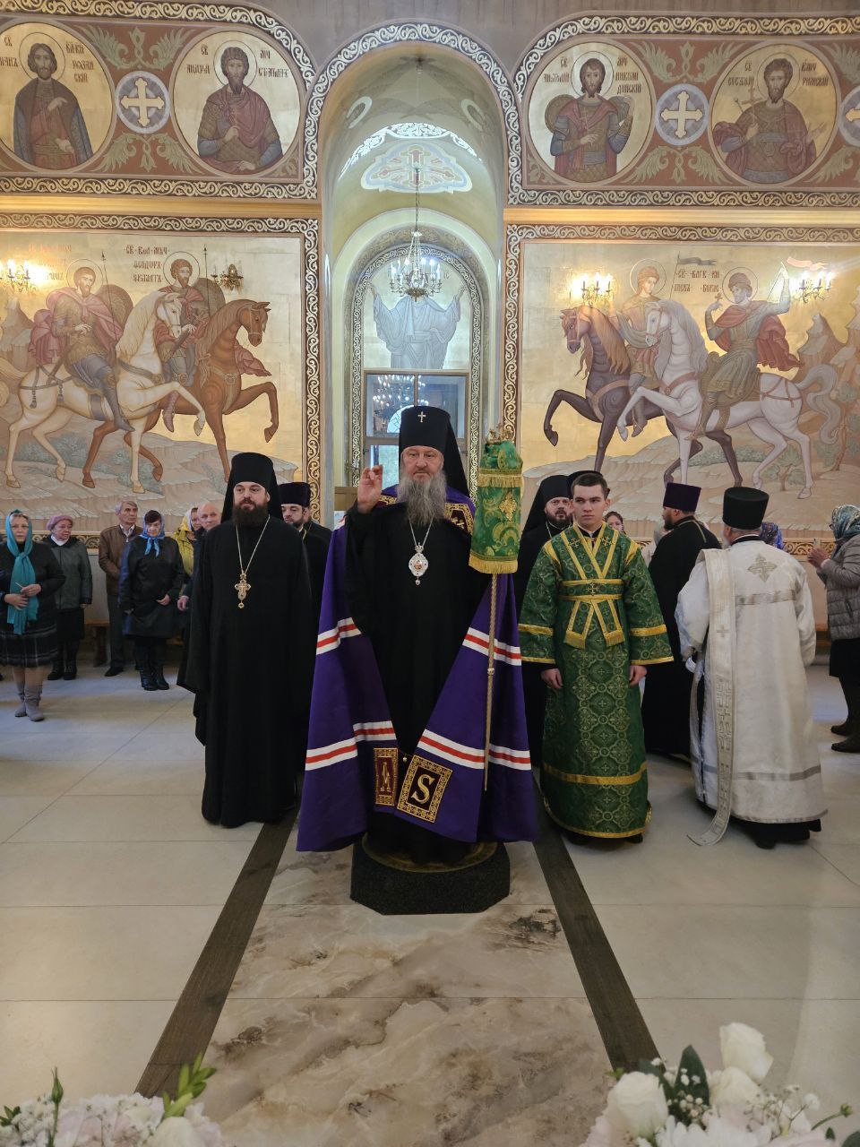 По отпусте Божественной литургии духовенство во главе с Владыкой совершило славление ныне прославляемому Церковью Архистратигу Божию Михаилу пред его честны́м образом.