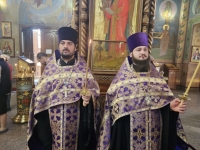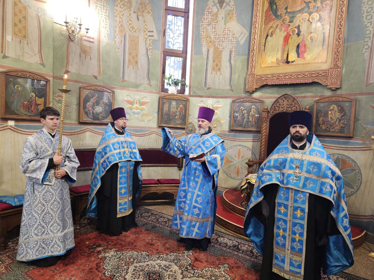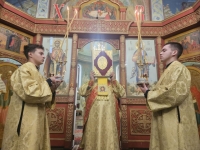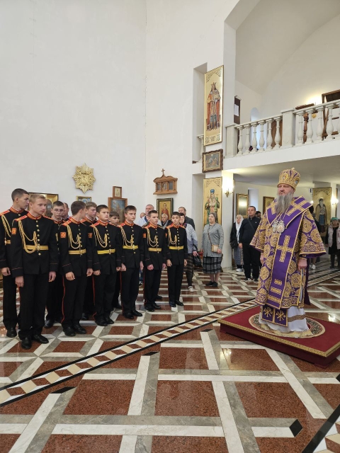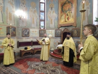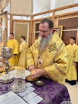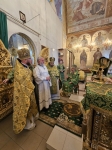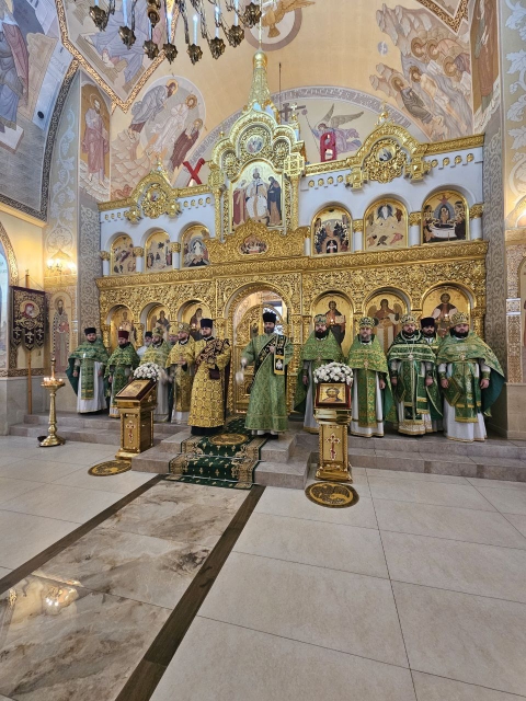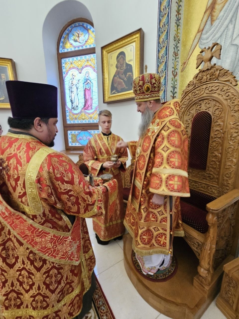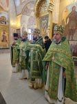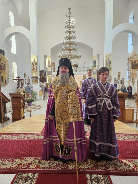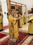 Высокопреосвященнейшему Владыке сослужили соборный причт, а также клирик храма Покрова Пресвятой Богородицы протоиерей Николай Чепель, настоятель храма Новомученников и исповедников Российских протоиерей Георгий Лесник и проходящий богослужебную практику иеродиакон Никанор (Цверкун).