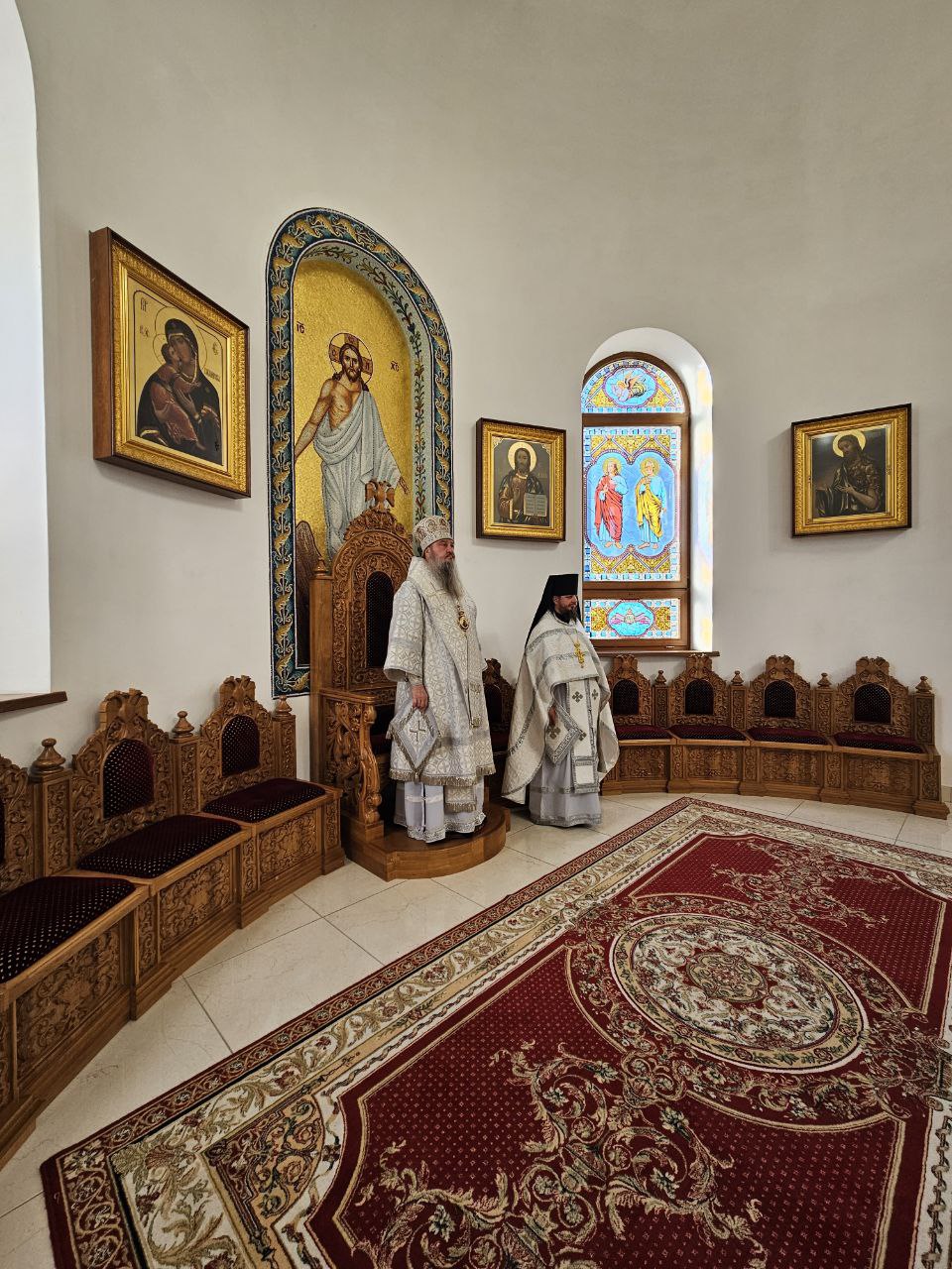 По отпусте Божественной литургии было совершено славление пред образом Воскресения Христова, вознесены молитвы о здравии и благоденствии ктиторов, благотворителей и прихожан Воздвиженского прихода.