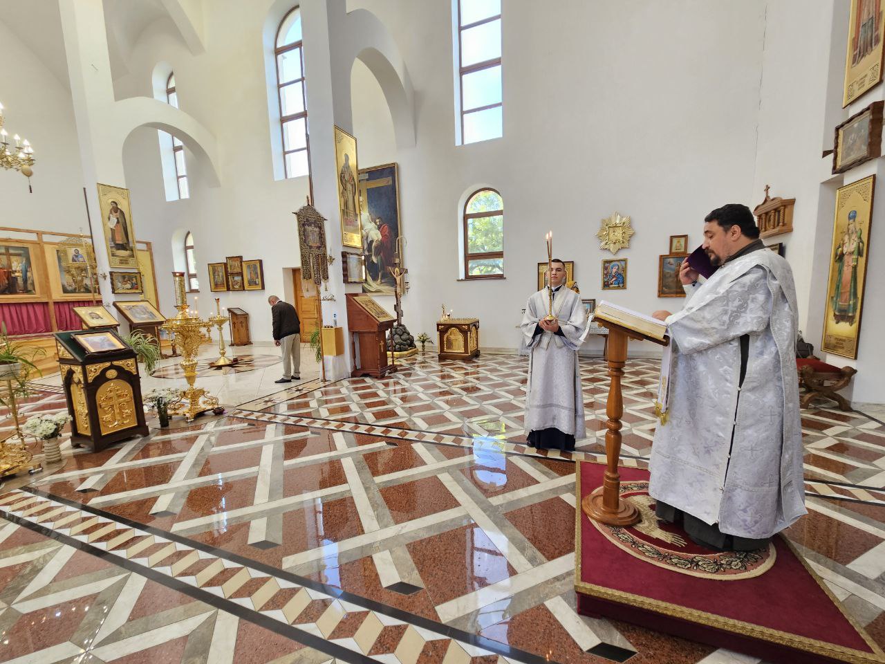 Высокопреосвященнейшему Владыке настоятелю сослужили клирик прихода иеромонах Иоанн (Трайто), а также клирик кафедрального собора Рождества Христова протодиакон Сергий Афтени.