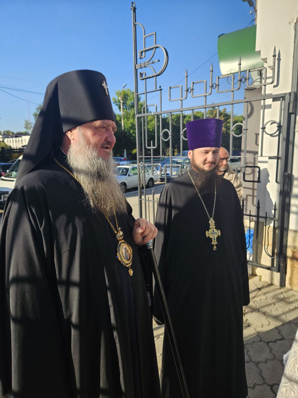 Его Высокопреосвященство встретил у святых врат собора Предстоятеля Православной Церкви Молдовы Митрополита Кишиневского и всея Молдовы Владимира.