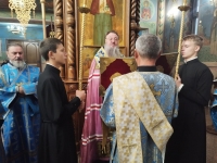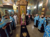Его Высокопреосвященству сослужили ключарь кафедрального собора протоиерей Павел Кузменых, клирик храма иеромонах Иоанн (Трайто) и клирик кафедрального собора протодиакон Сергий Афтени.