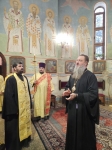 На малом входе за труды во славу Святой Матери Церкви права ношения наперсного креста с украшениями был удостоен клирик Воздвиженского прихода иеромонах Иоанн (Трайто).