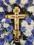 В завершение Божественной Литургии перед находящимся в центре храма до отдания праздника Воздвижения Креста Господня украшенным цветами Распятием и иконой св. мцц. Веры, Надежды, Любови и матери их Софии было совершено славление, после чего Правящий Архиерей обратился к пастве со словом назидания, приведя в пример жизнь и страданий святых мучениц и их славной матери, память которых совершается в сей день.