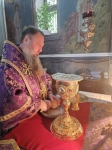 За богослужением, была совершена хиротония иеродиакона Никанора (Цверкуна) во иеромонаха.