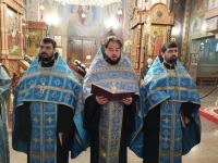 Его Высокопреосвященство совершил чинопоследование акафиста Божией Матери в кафедральном соборе Рождества Христова