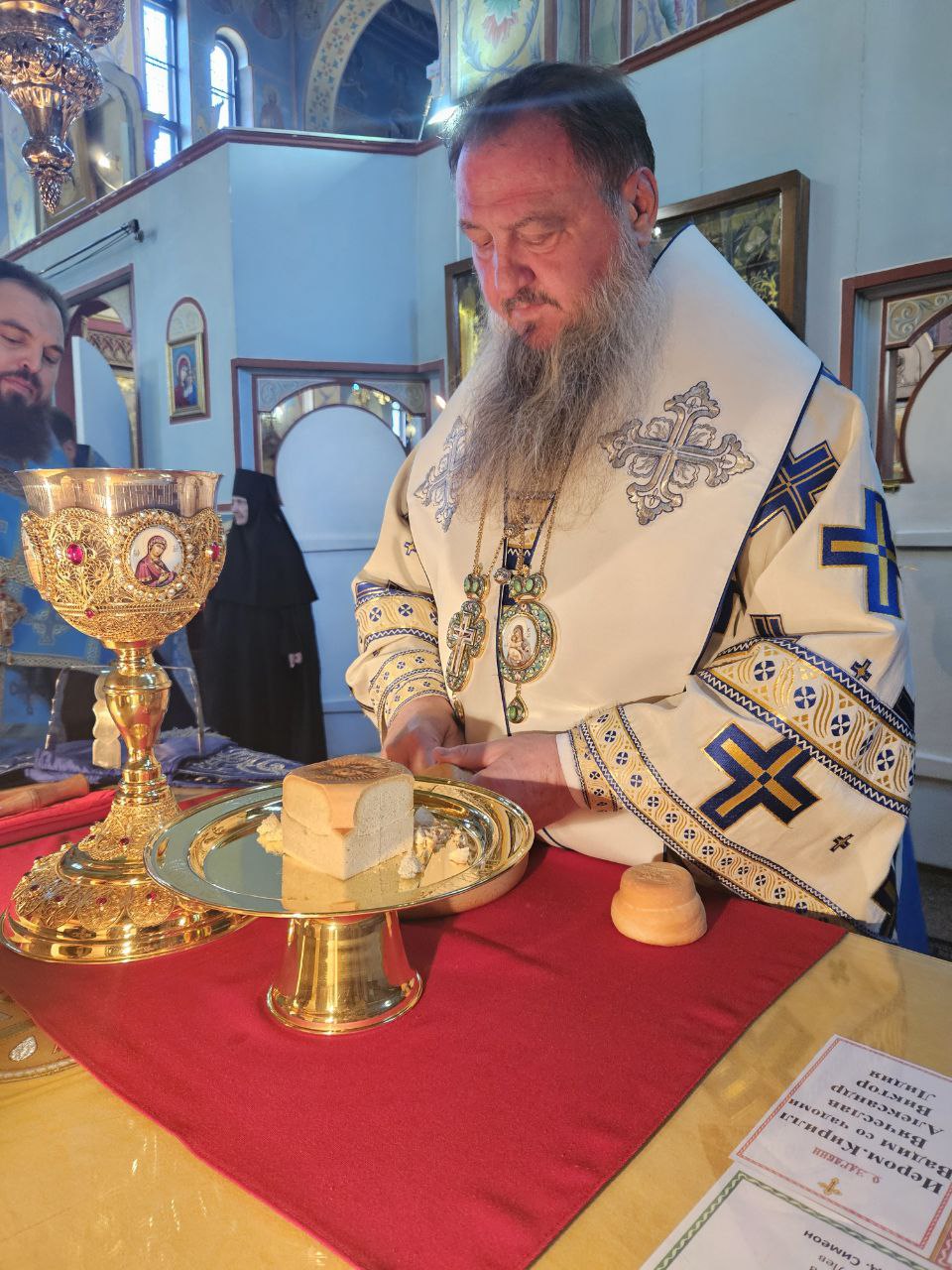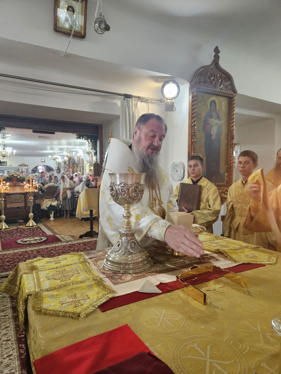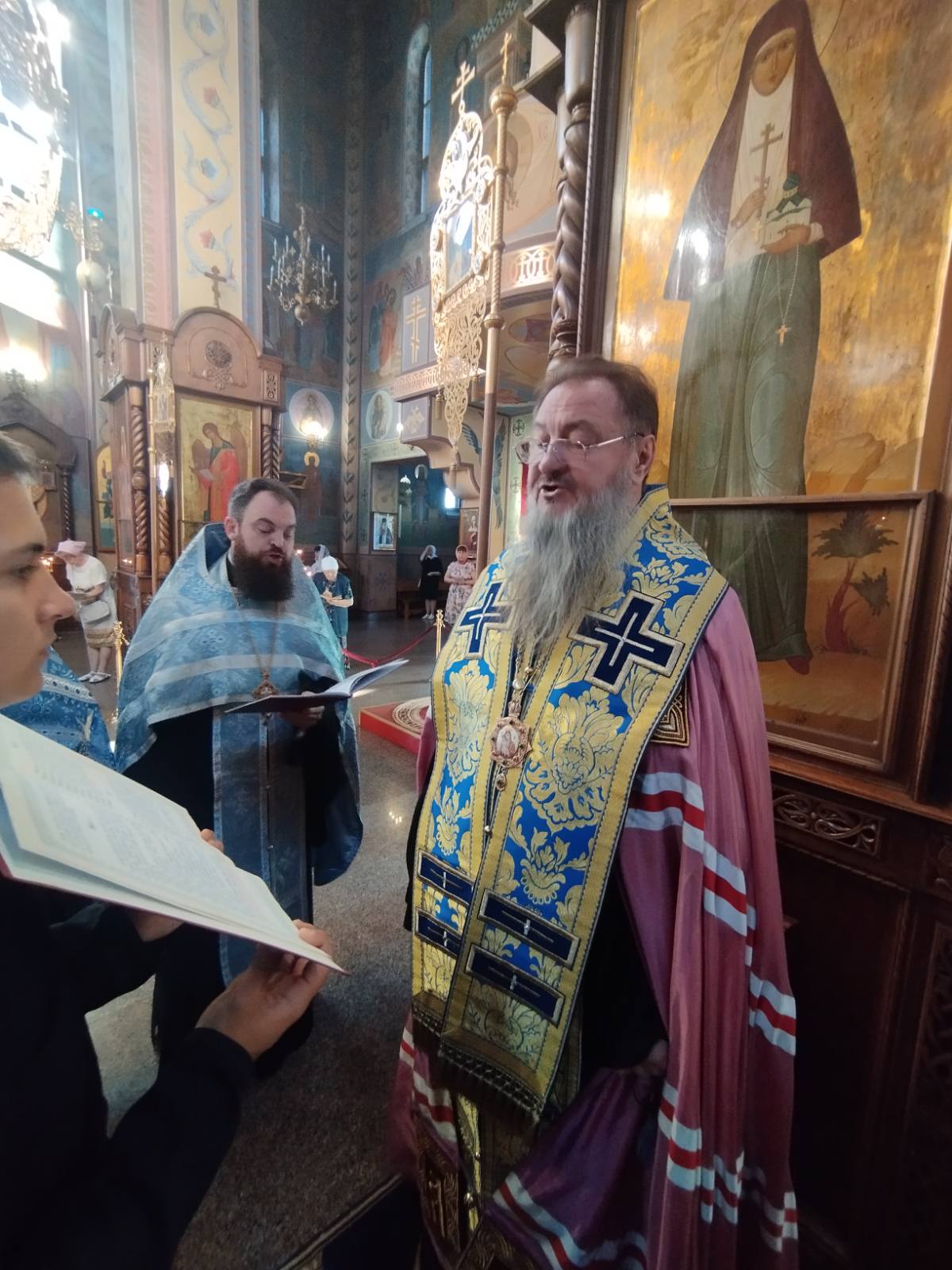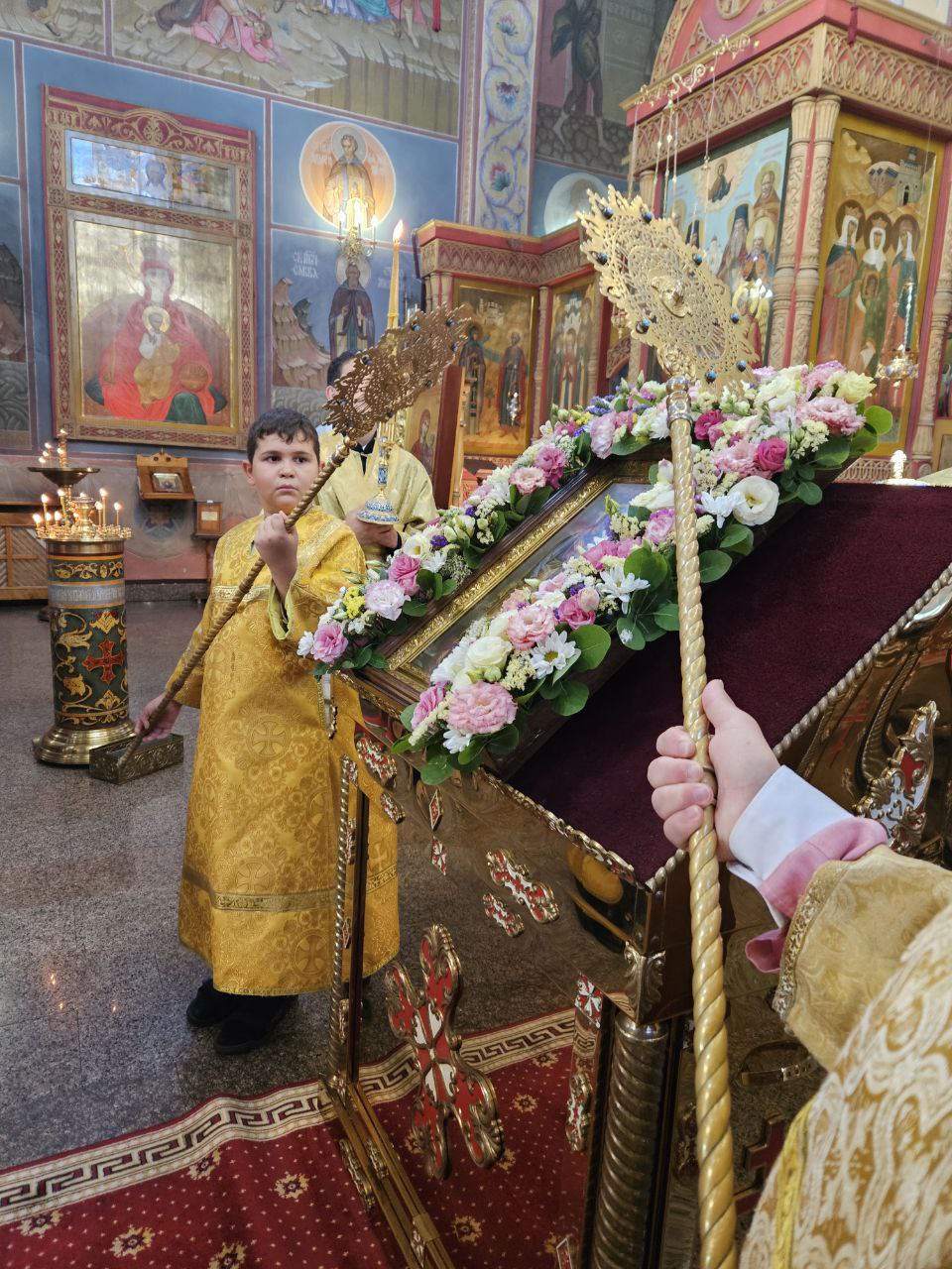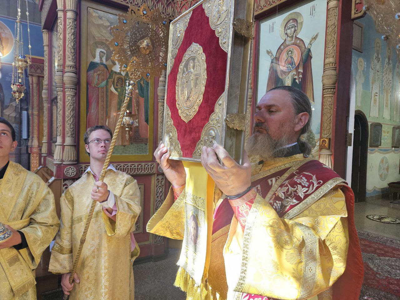 По отпусте Божественной литургии пред списком иконы Божией Матери, именуемой «Троеручица», было совершено славление, пропеты тропарь, кондак и величание, а архиепископ Савва вознёс молитву Царице Небесной.
