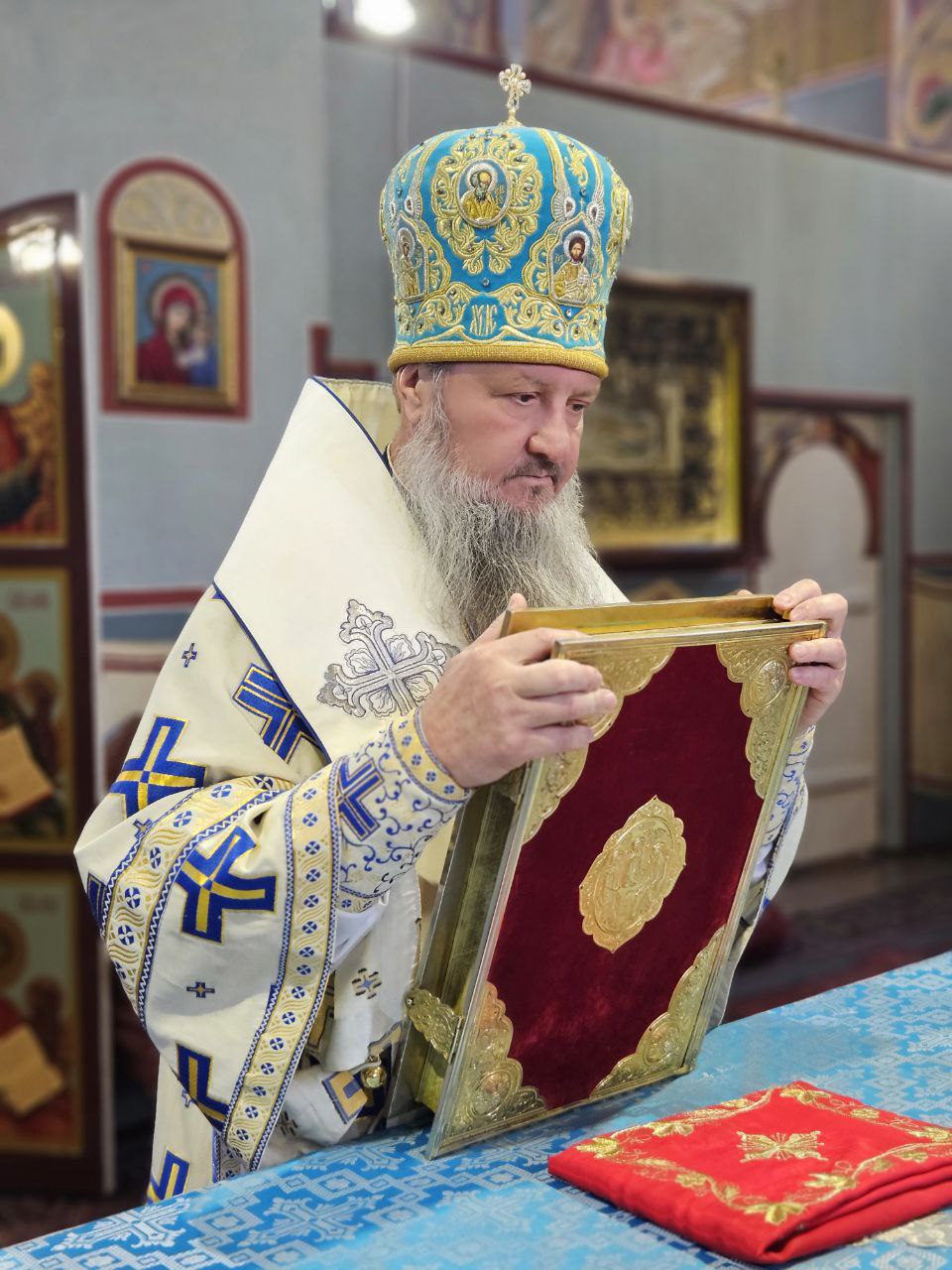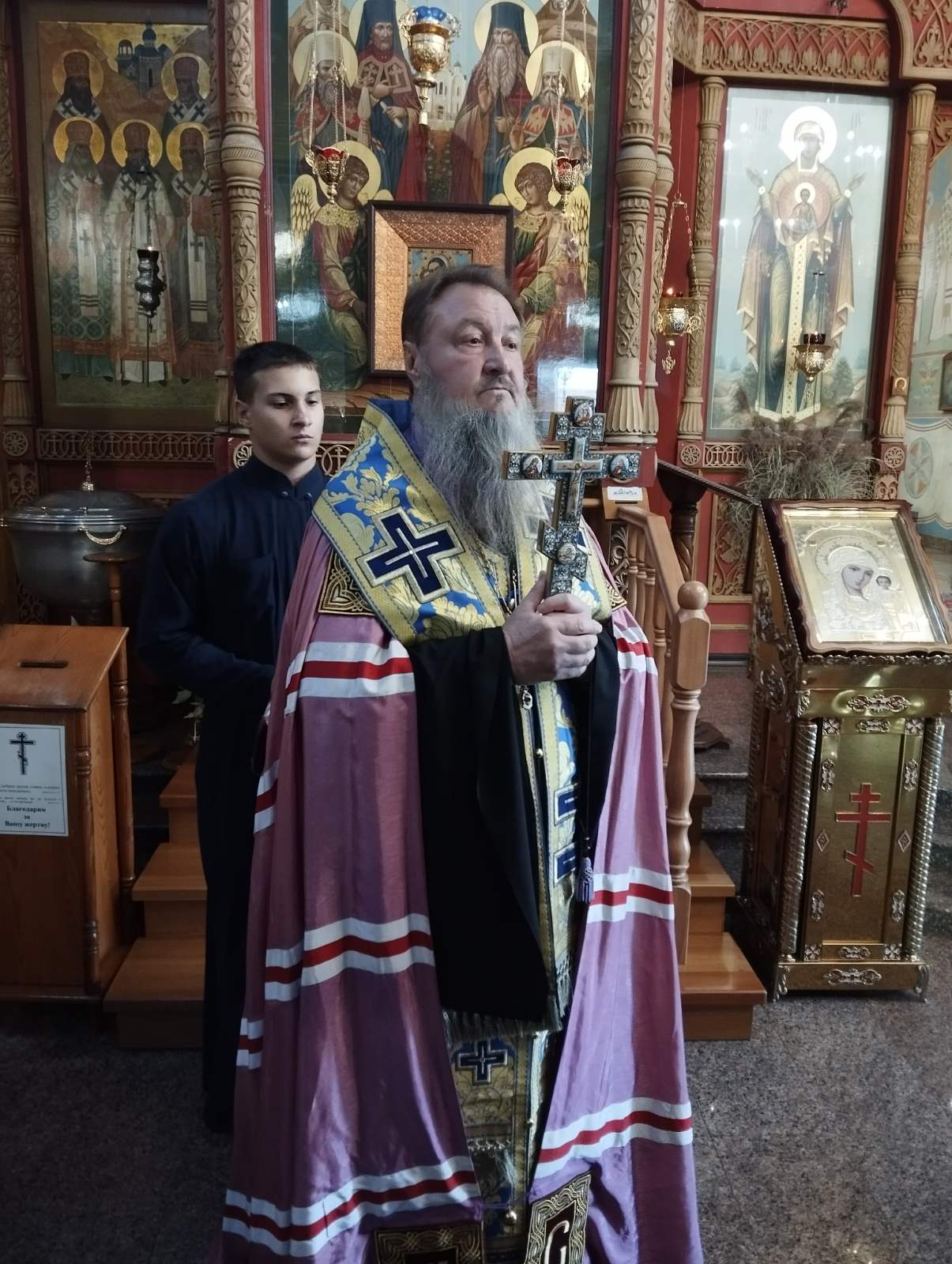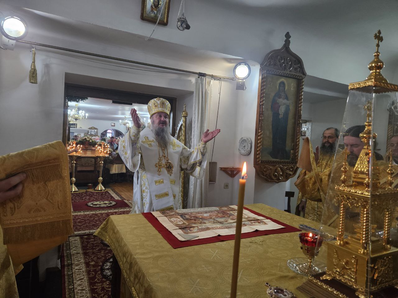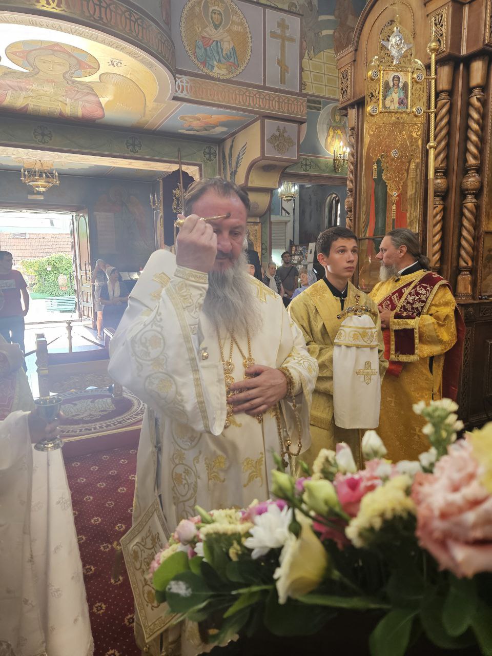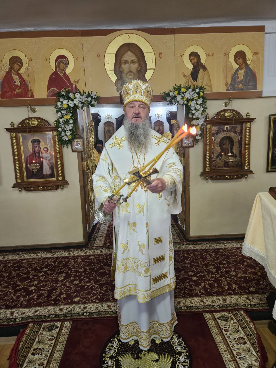 По отпусте Божественной литургии пред списком иконы Божией Матери, именуемой «Троеручица», было совершено славление, пропеты тропарь, кондак и величание, а архиепископ Савва вознёс молитву Царице Небесной.
