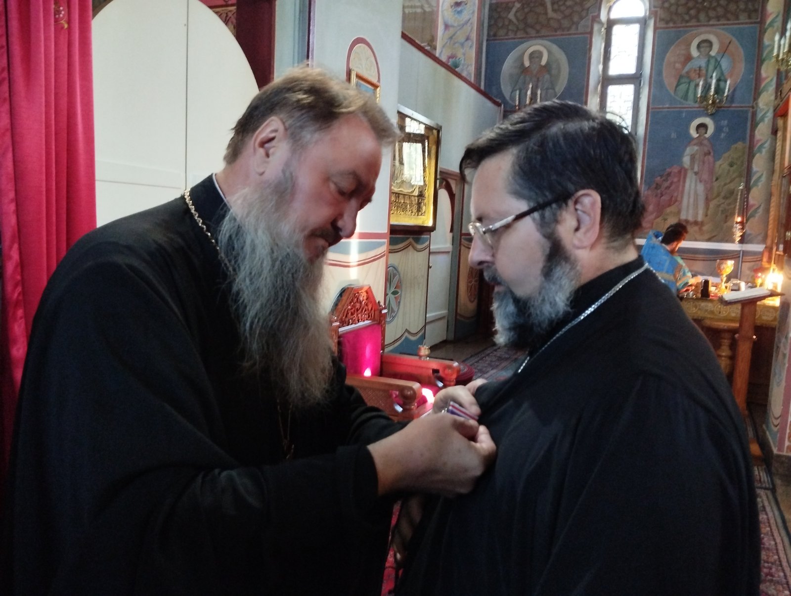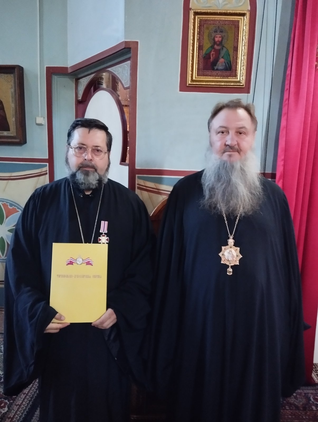 По окончании акафиста Правящий Архиерей вручил священнику Свято-Введенско-Пахомиева женского монастыря протоиерею Анатолию Каушану в ознаменование 25-летия служения в священном сане медаль Покрова Пресвятой Богородицы.