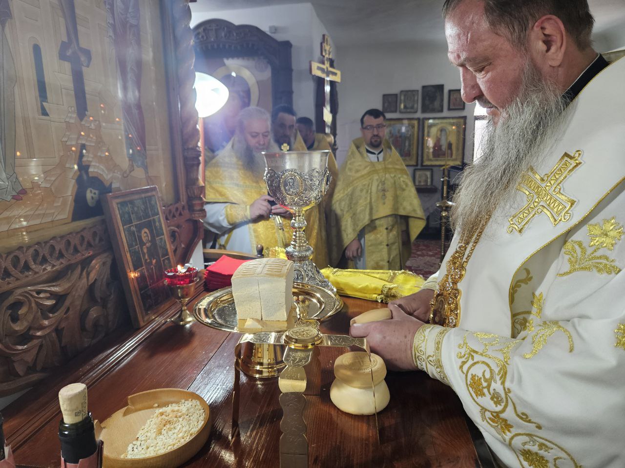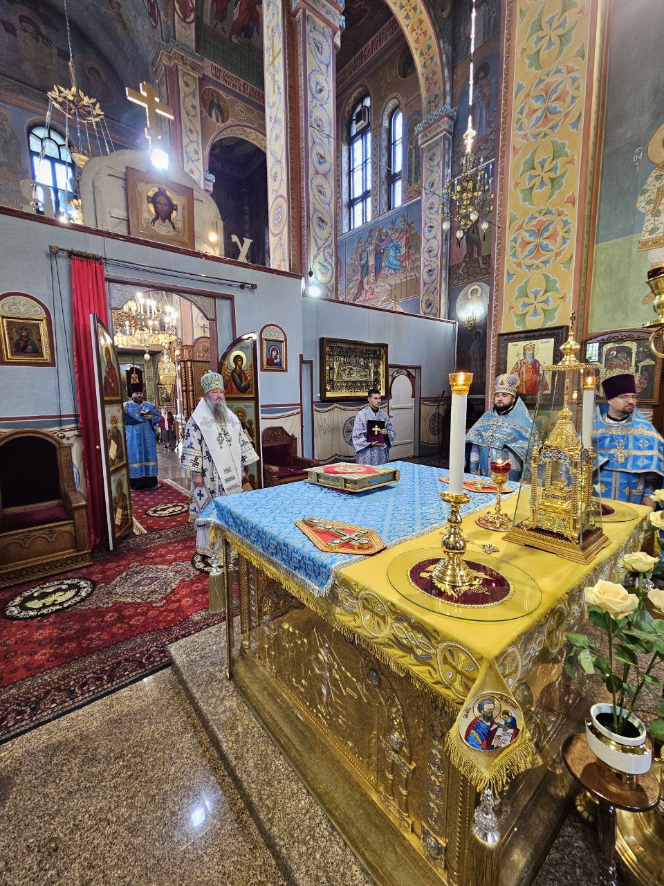 Архипастырю сослужили ключарь собора протоиерей Павел Кузменых и соборные клирики протодиакон Сергий Афтени, диакон Геннадий Гнатюк, а также прикомандированный в штат собора диакон Василий Донченко.