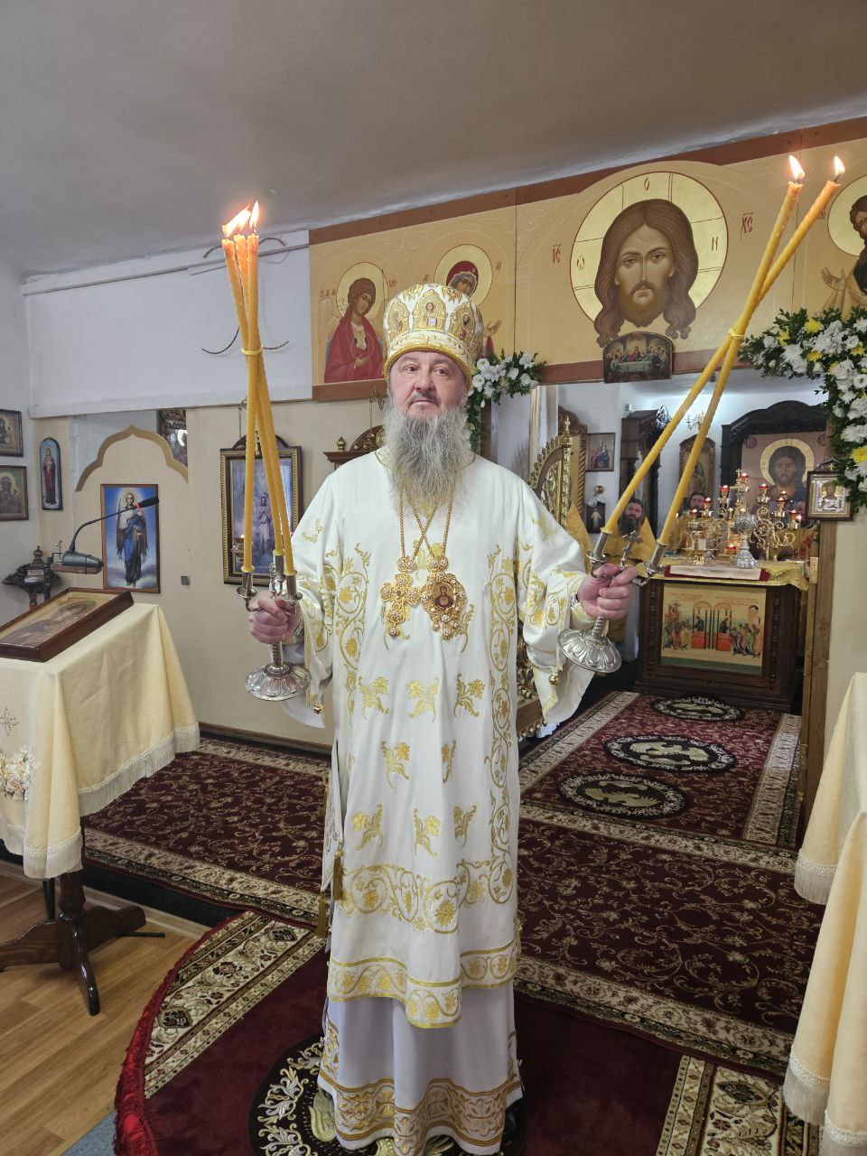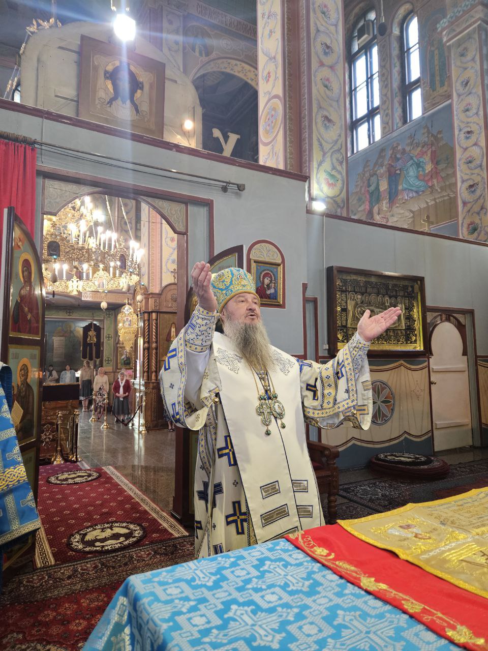 В завершение богослужения было совершено славление пред иконами Воскресения Христова и славных и всехвальных 12-ти апостолов, к которым архиепископ Савва обратился со словами молитвы, испрашивая их предстательства о Церкви и народе Божием.