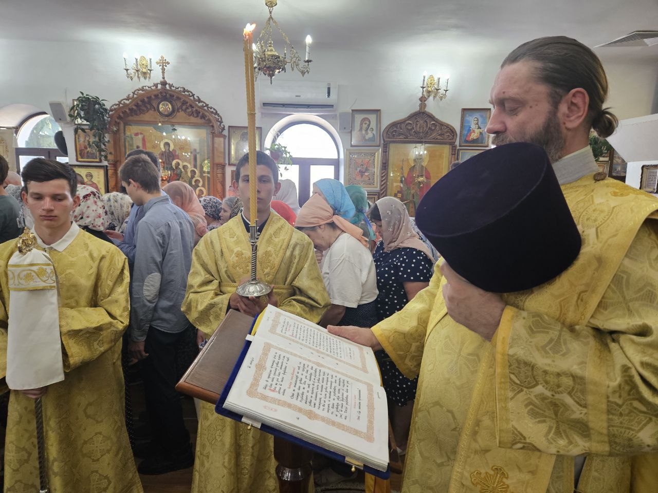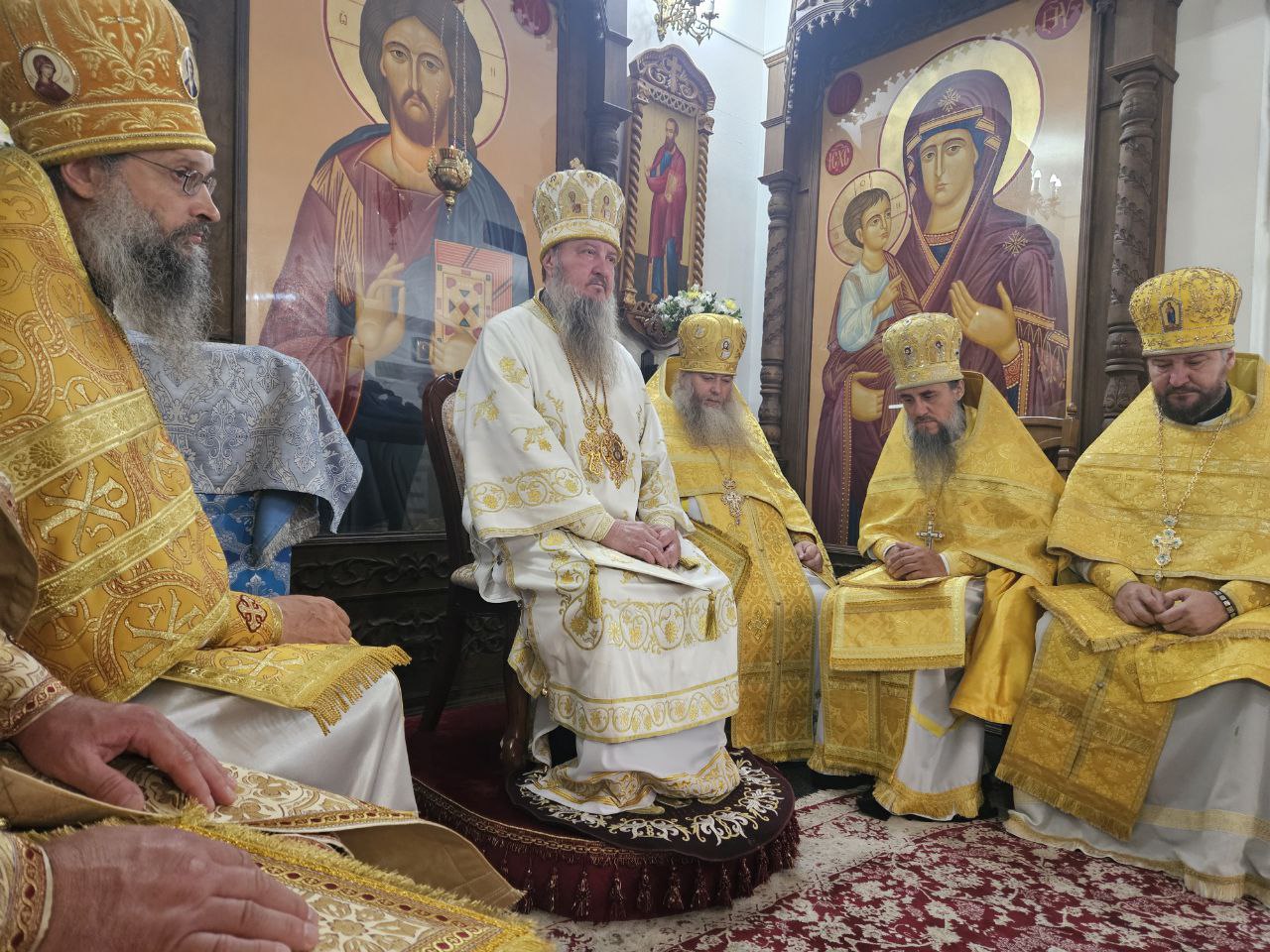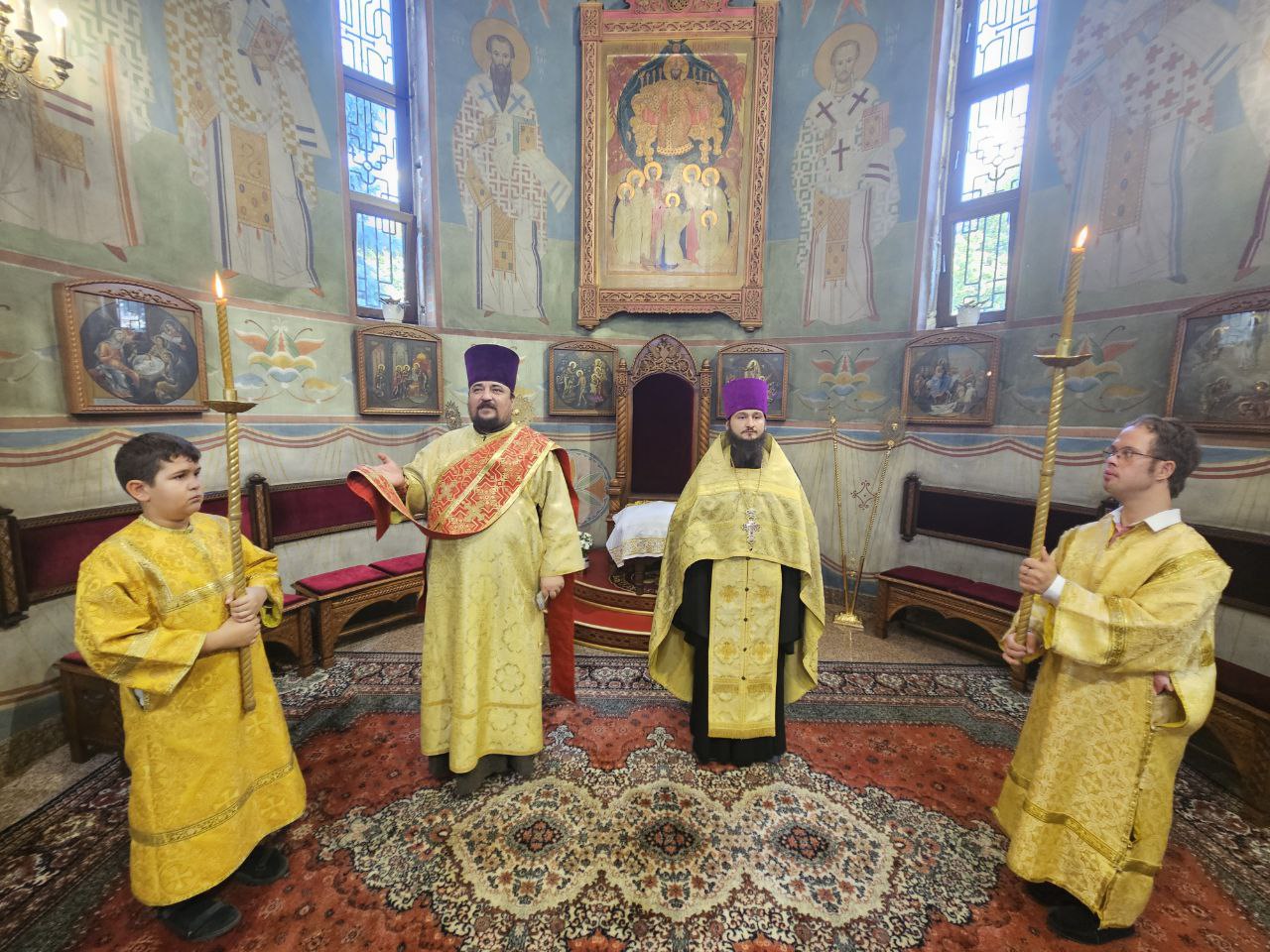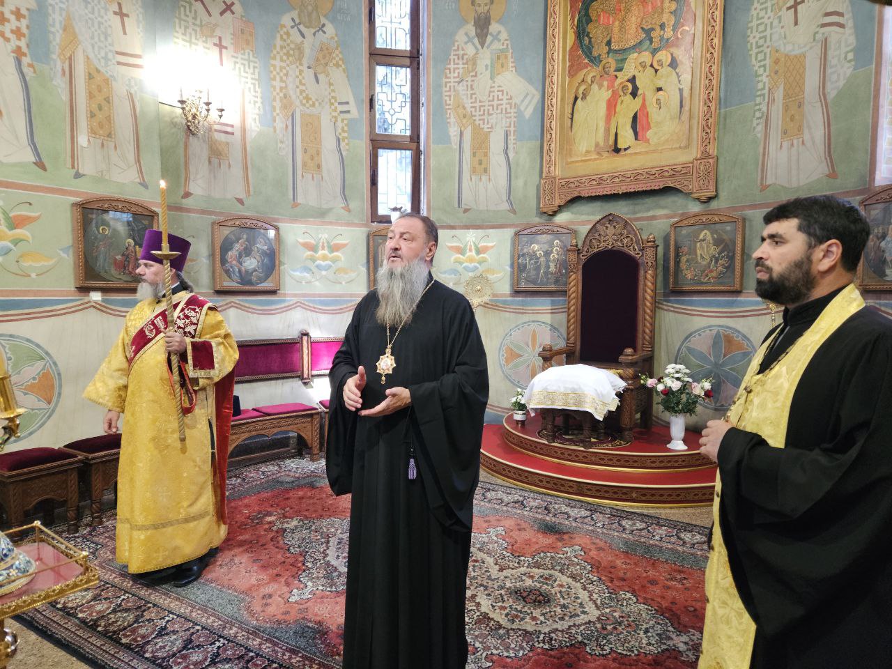 Высокопреосвященнейшему Владыке настоятелю сослужили клирик прихода иеромонах Иоанн (Трайто), проходящий богослужебную практику иерей Роман Казанцев и клирики кафедрального собора Рождества Христова протодиакон Сергий Афтени и иеродиакон Симеон (Лупашко).