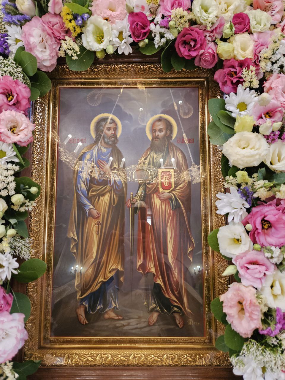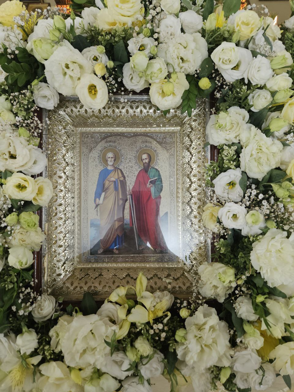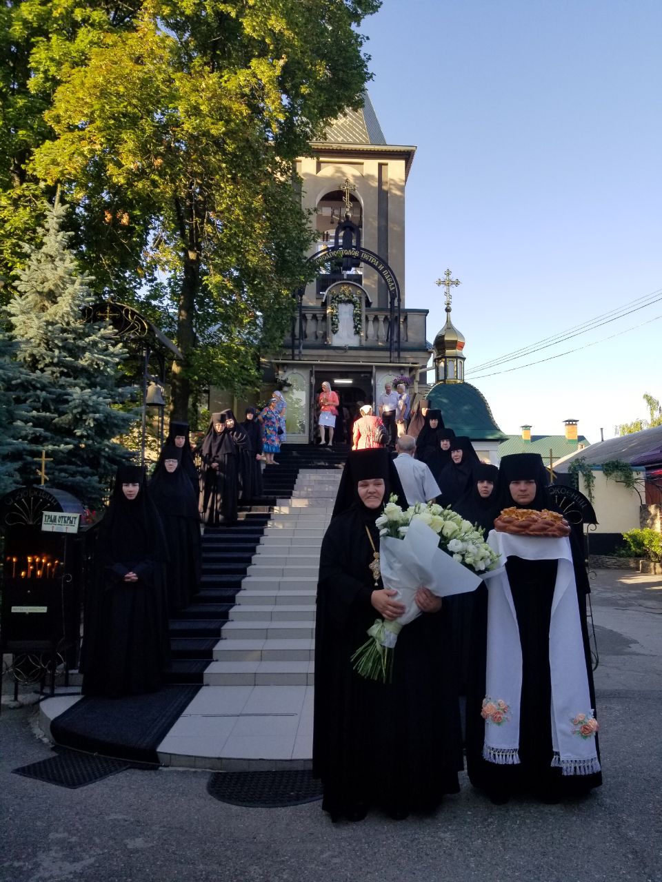 Многие из молившихся за богослужением мирян, а также сёстры обители со страхом и трепетом приступили ко Святым Христовым Тайнам. В завершение богослужения с благолепно украшенной иконой святых апостолов Петра и Павла, а также ковчегом с хранящимися в монастыре как величайшая святыня частицами мощей первоверховных апостолов и прочими святынями был совершён крестный ход вокруг обители, на котором архиепископ Савва прочёл подобающий случаю отрывок из Святого Евангелия, а священники поочерёдно окропляли народ святой водой.