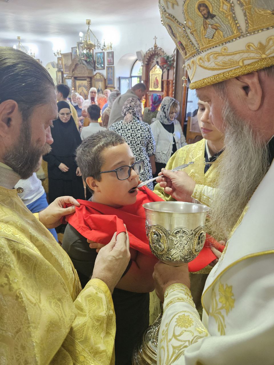 В этот воскресный день храм был полон молящихся. Верующие, с усердием готовившие себя постом и покаянием, в великом числе приступили к Таинству Святого Причащения, соединяясь со Христом в Его Животворящих Теле и Крови.