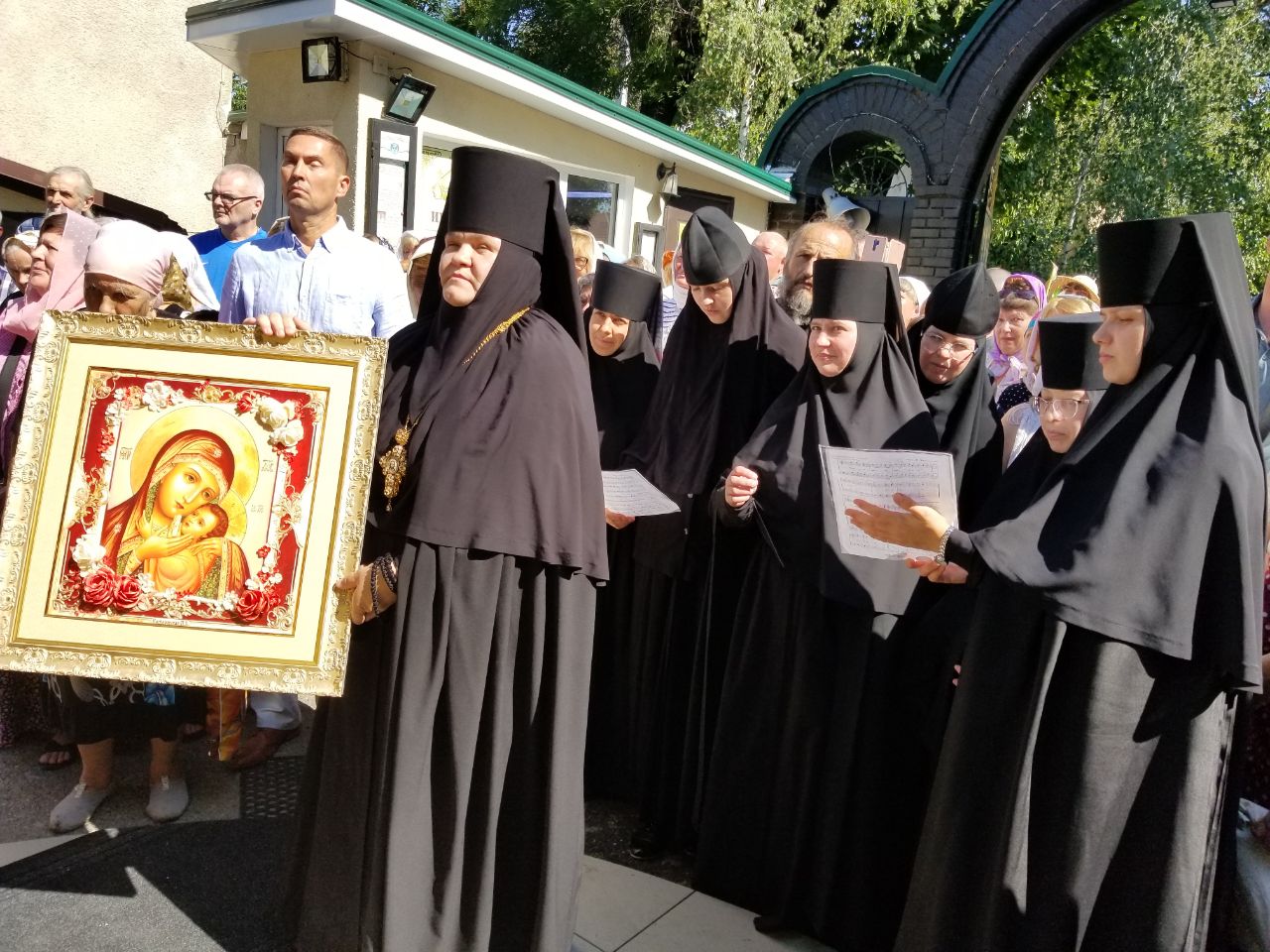 За богослужением молились настоятельница обители игумения Елисавета (Василаке) с сестрами, настоятельница Свято-Введенско-Пахомиева женского монастыря во граде Тирасполе игумения Пахомия (Лещук) и во множестве собравшиеся на престольное торжество монастыря богомольцы, с благоговением внимавшие песнопениям Божественной литургии.