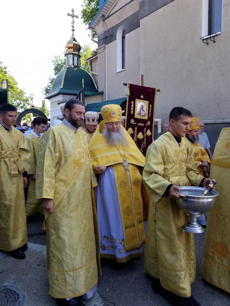 В завершение литургии было совершено славление честно́му славному Пророку, Предтече и Крестителю Господню Иоанну. Архиепископ Савва прочёл молитву этому «земному ангелу и небесному человеку», как называет святого в Каноне на рождество Иоанна Предтечи прп. Андрей Критский. Затем Высокопреосвященнейший Владыка, по традиции, окропил паломников святой водой.