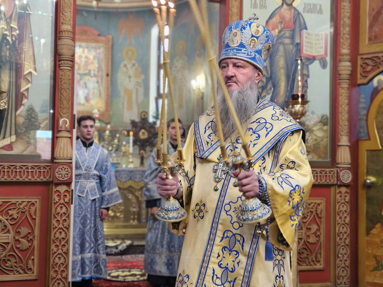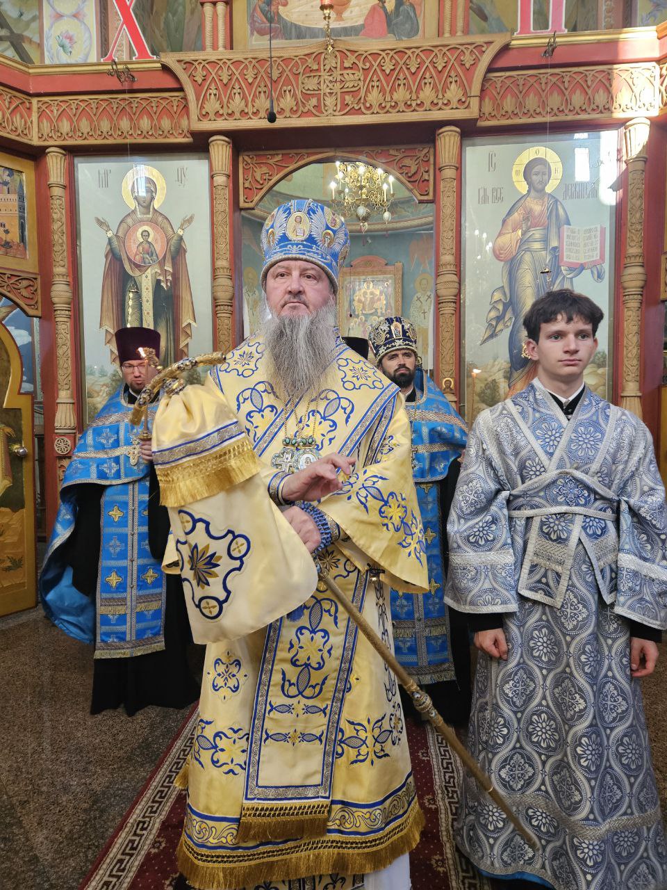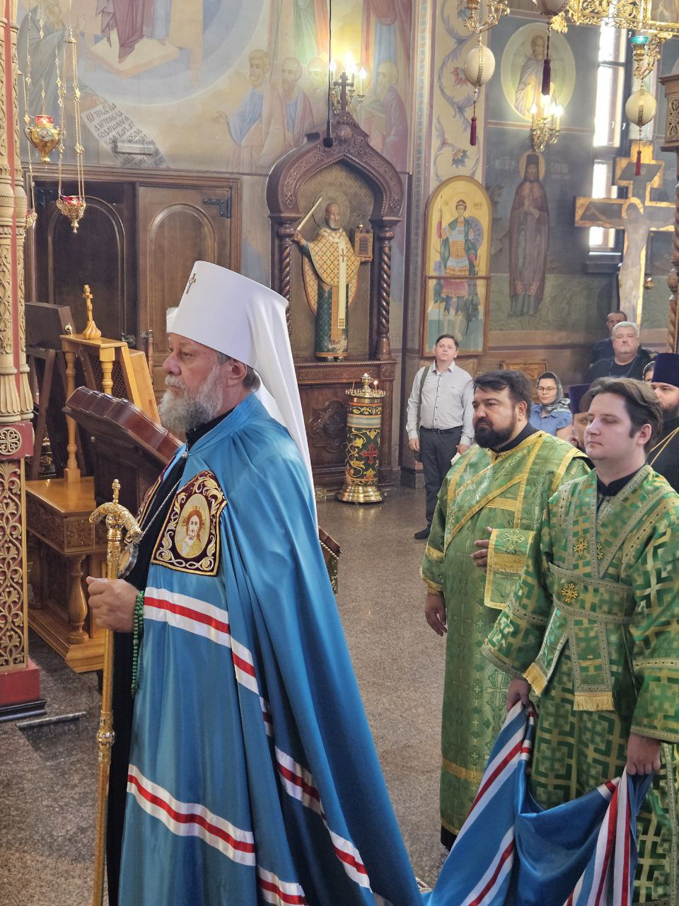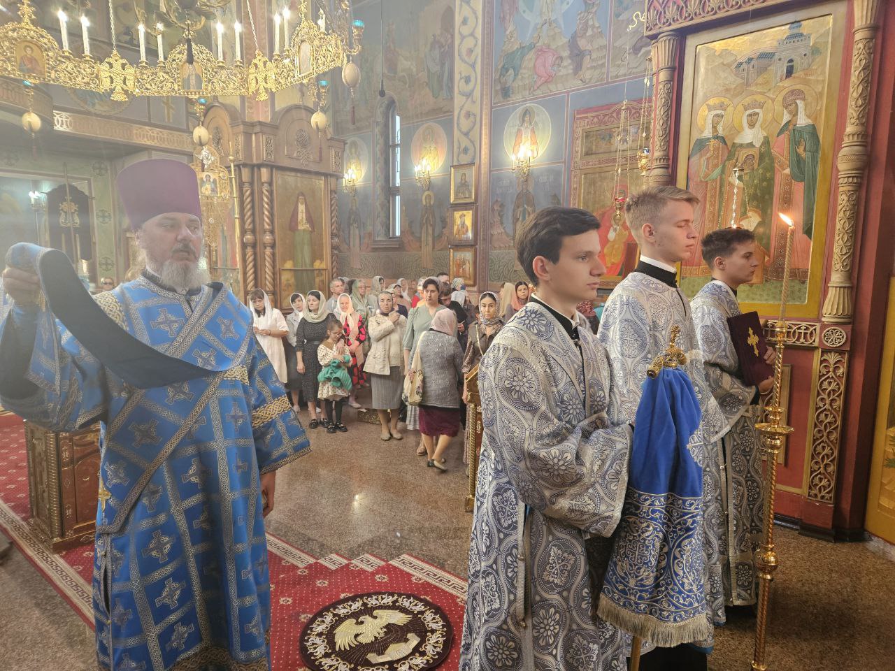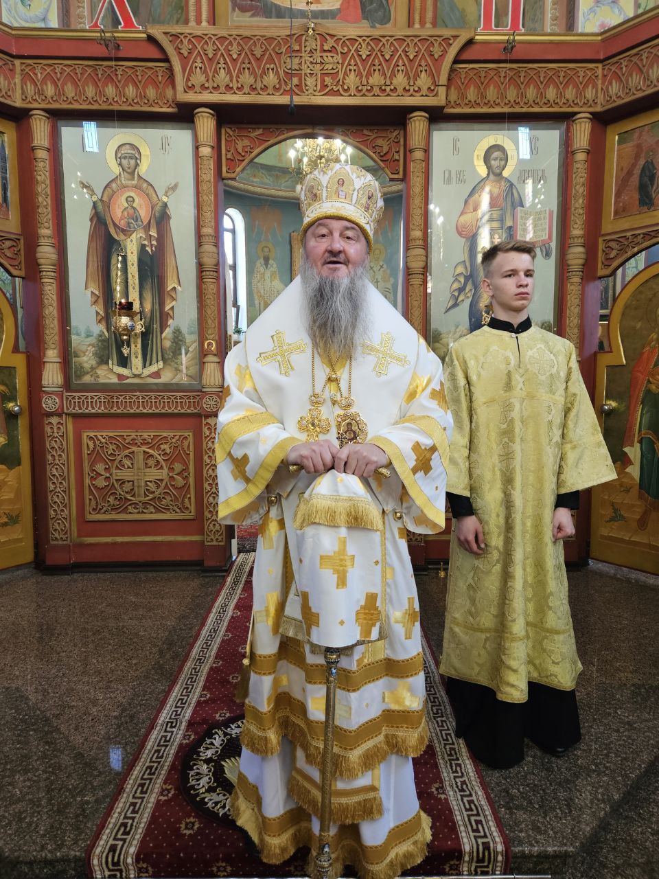 Высокопреосвященнейшему Владыке сослужили соборный причт, а также клирик храма Покрова Пресвятой Богородицы протоиерей Николай Чепель, настоятель храма Новомученников и исповедников Российских протоиерей Георгий Лесник и проходящий богослужебную практику иеродиакон Никанор (Цверкун).