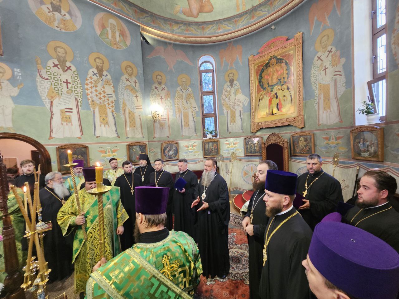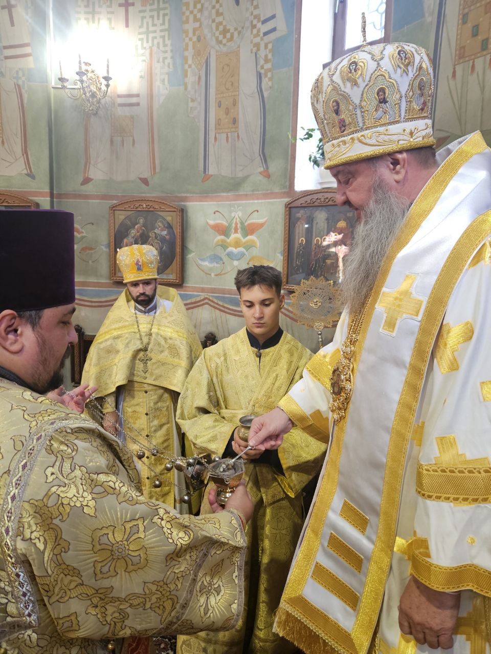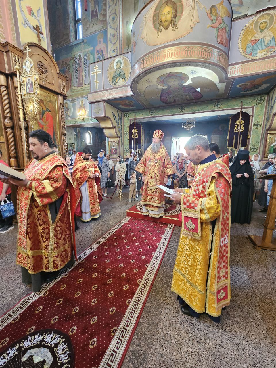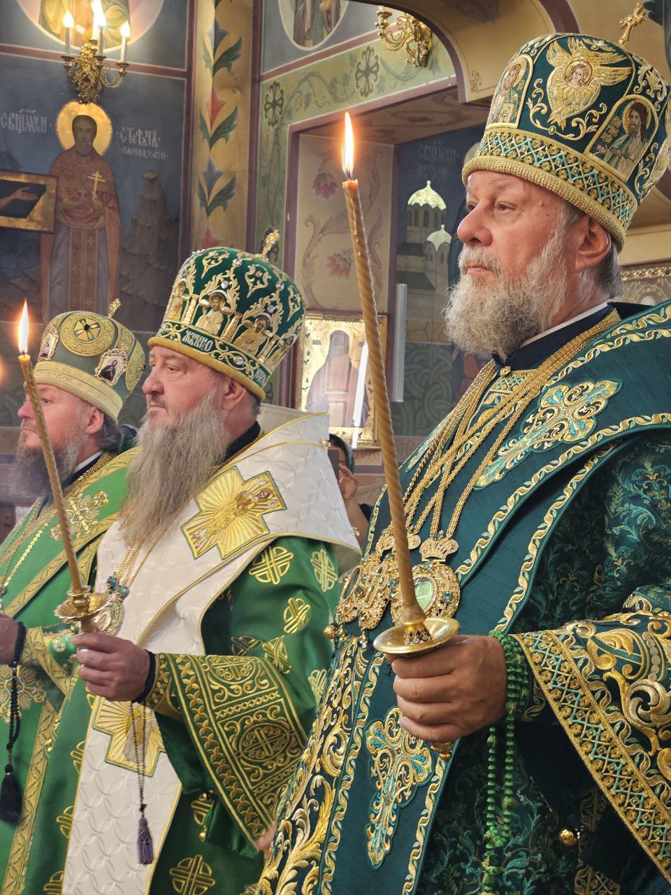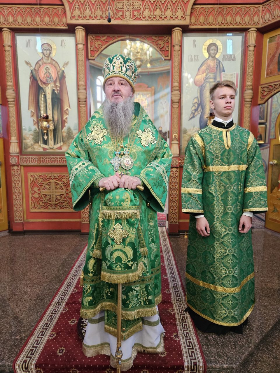 Высокопреосвященнейшему Владыке сослужили соборный причт, а также клирик храма Покрова Пресвятой Богородицы протоиерей Николай Чепель, настоятель храма Новомученников и исповедников Российских протоиерей Георгий Лесник и проходящий богослужебную практику иеродиакон Никанор (Цверкун).