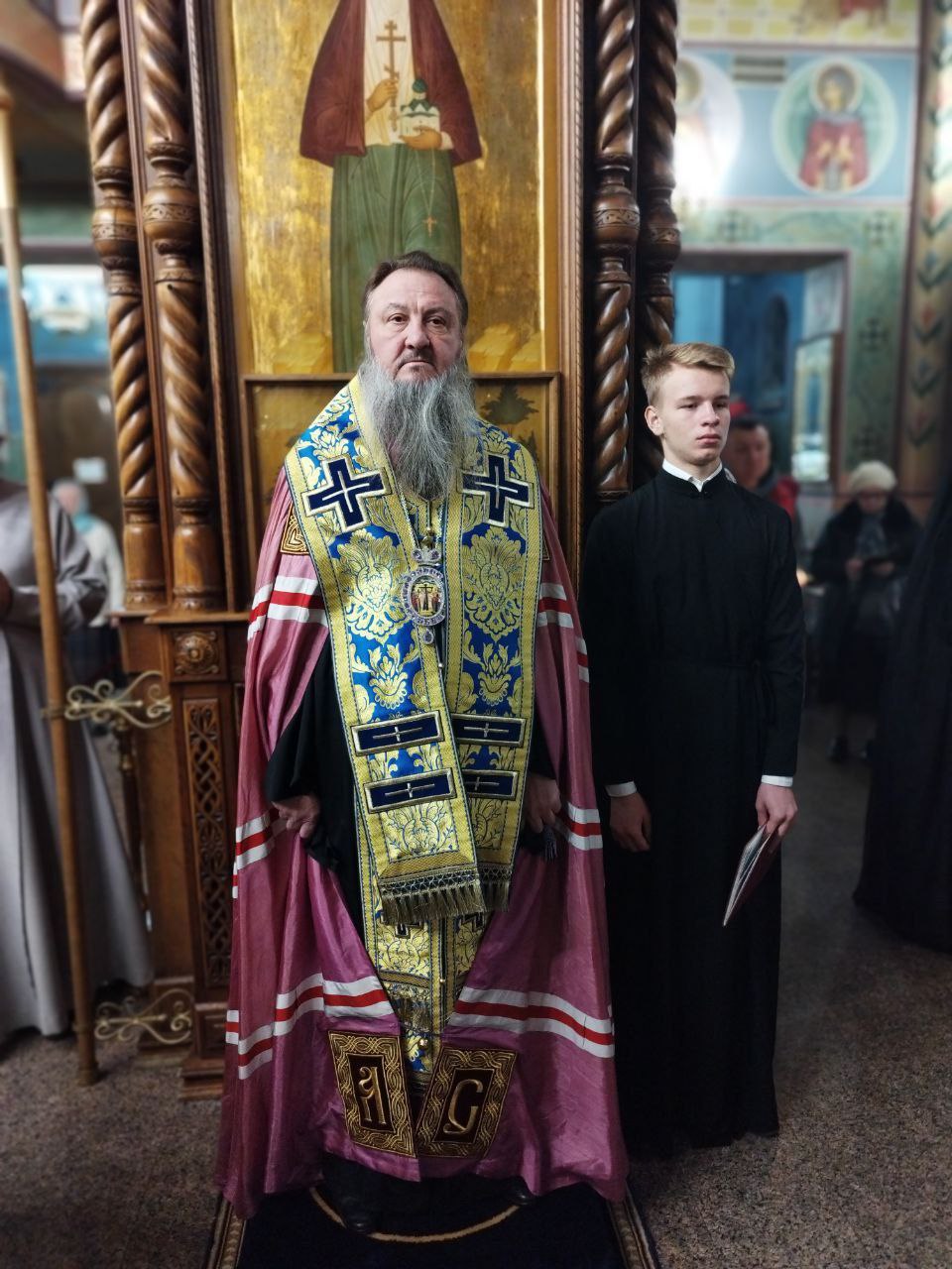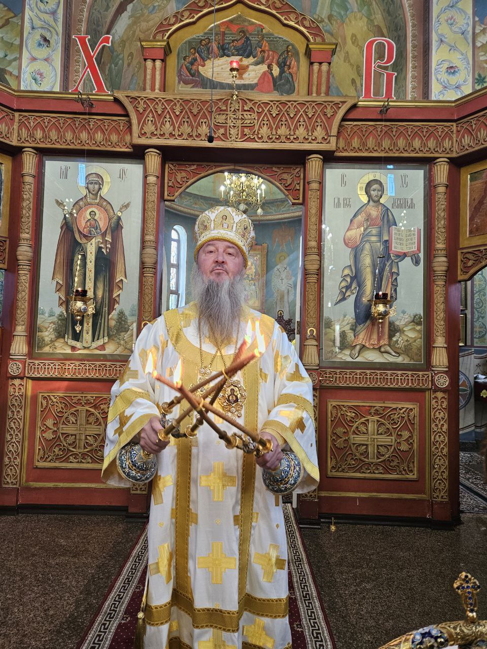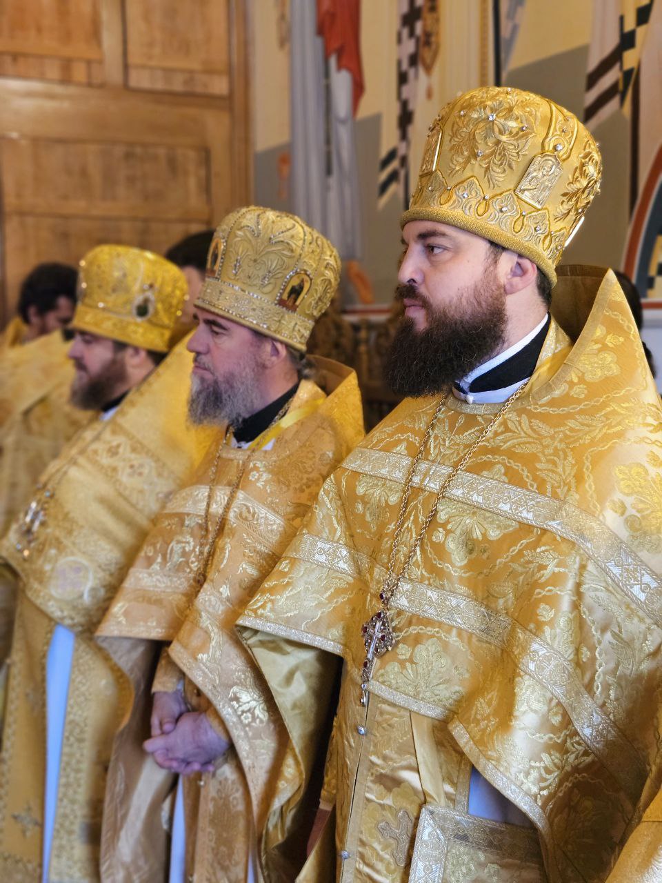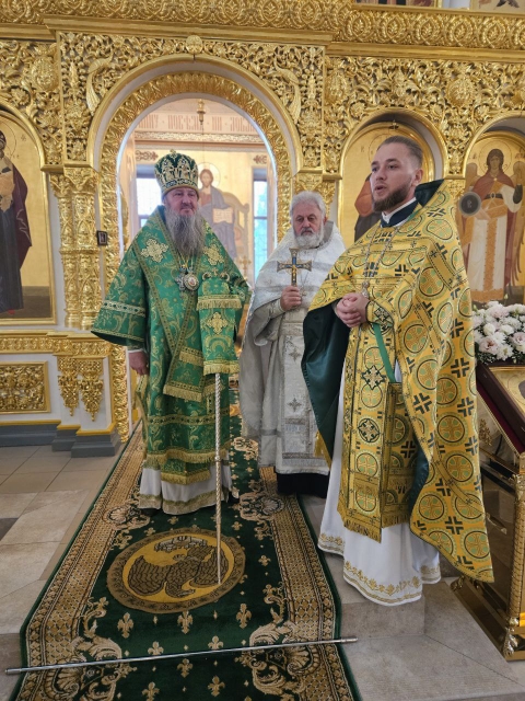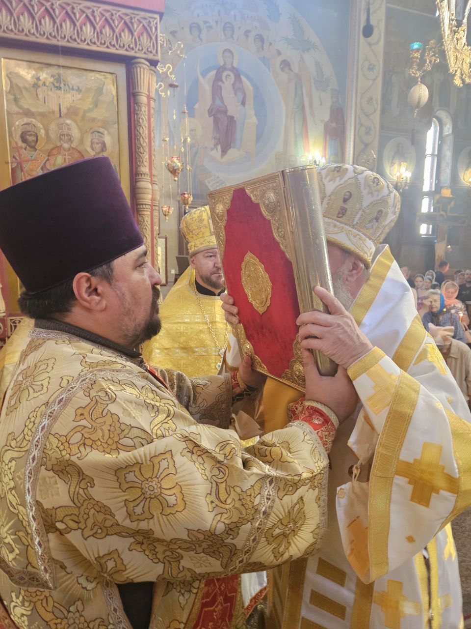 Высокопреосвященнейшему Владыке сослужили соборный причт, а также клирик храма Покрова Пресвятой Богородицы протоиерей Николай Чепель, настоятель храма Новомученников и исповедников Российских протоиерей Георгий Лесник и проходящий богослужебную практику иеродиакон Никанор (Цверкун).