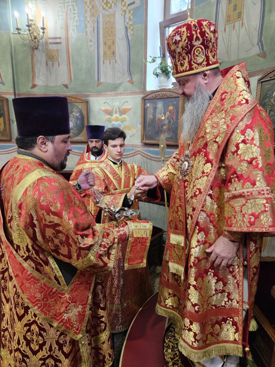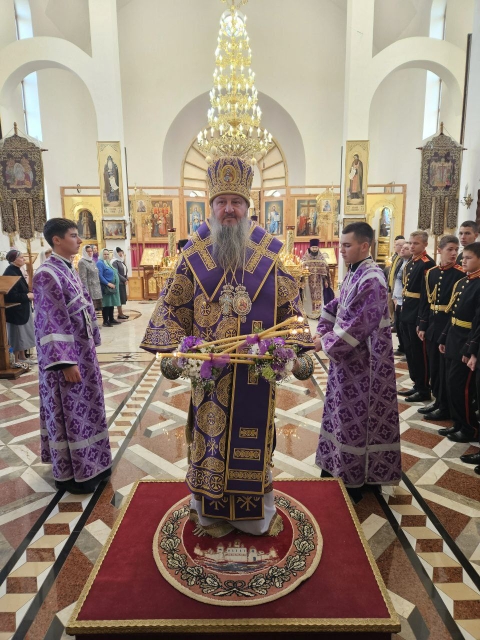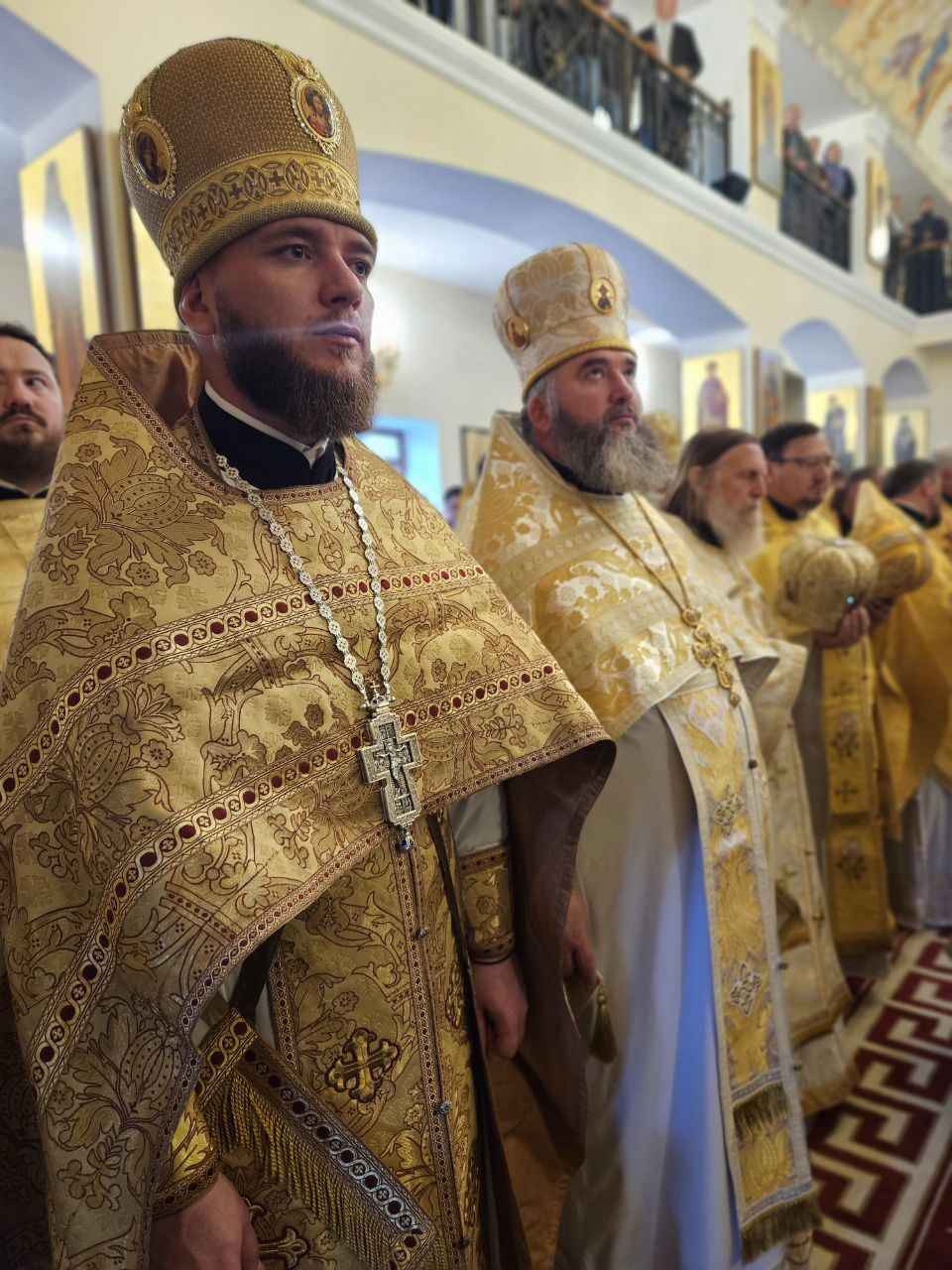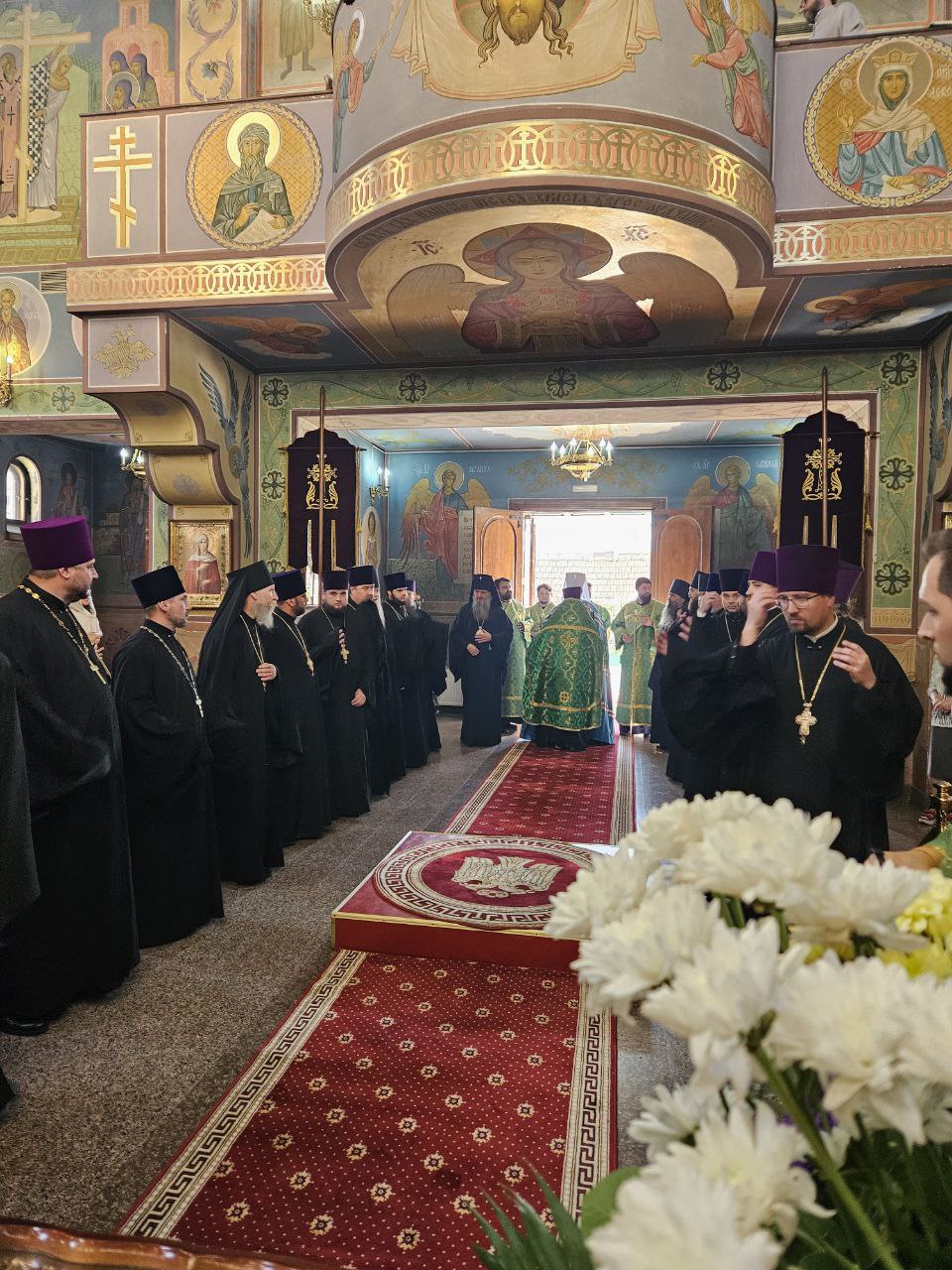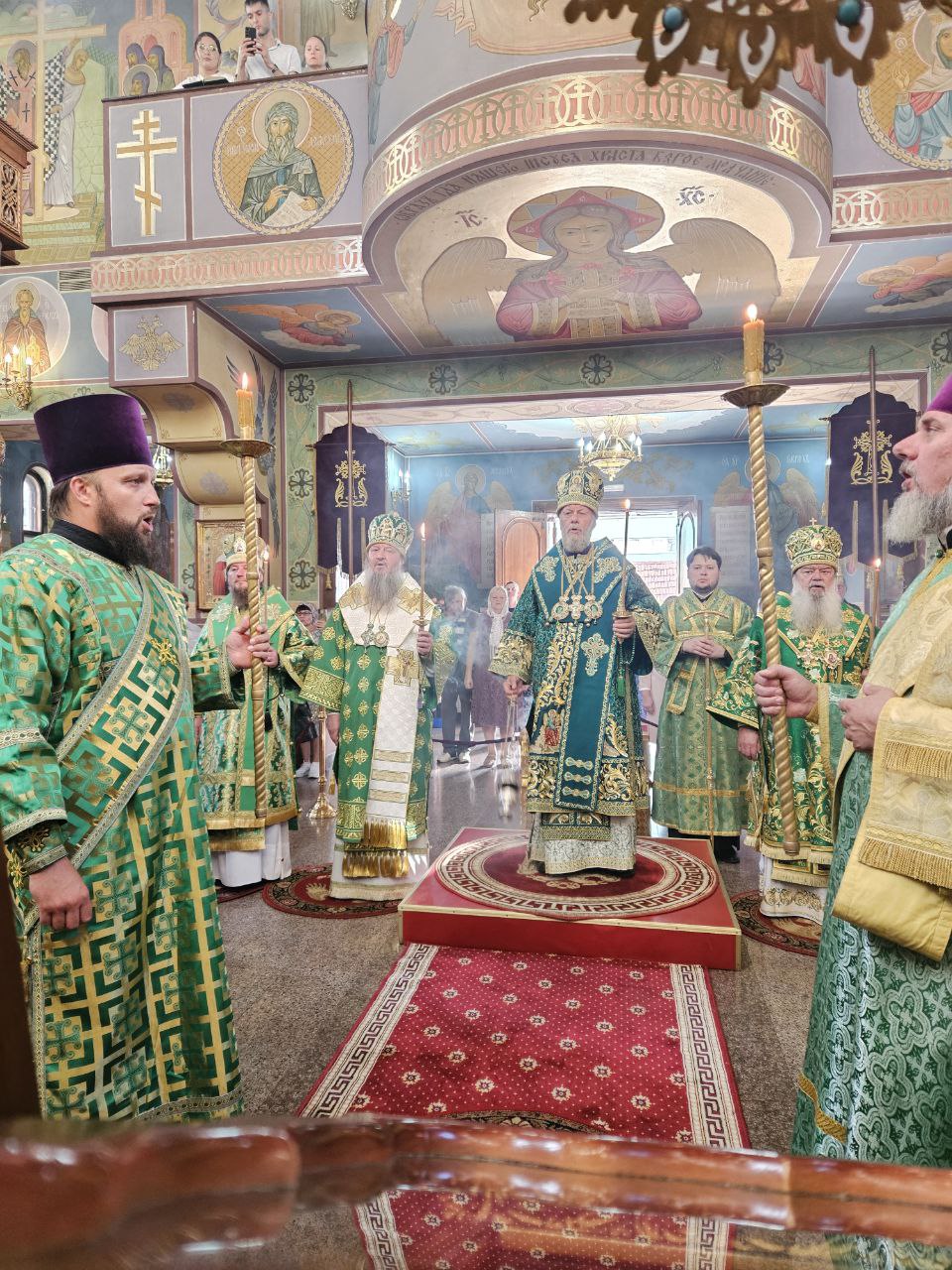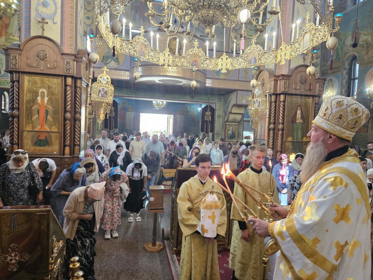 Высокопреосвященнейшему Владыке сослужили соборный причт, а также клирик храма Покрова Пресвятой Богородицы протоиерей Николай Чепель, настоятель храма Новомученников и исповедников Российских протоиерей Георгий Лесник и проходящий богослужебную практику иеродиакон Никанор (Цверкун).