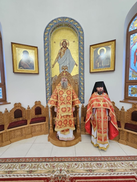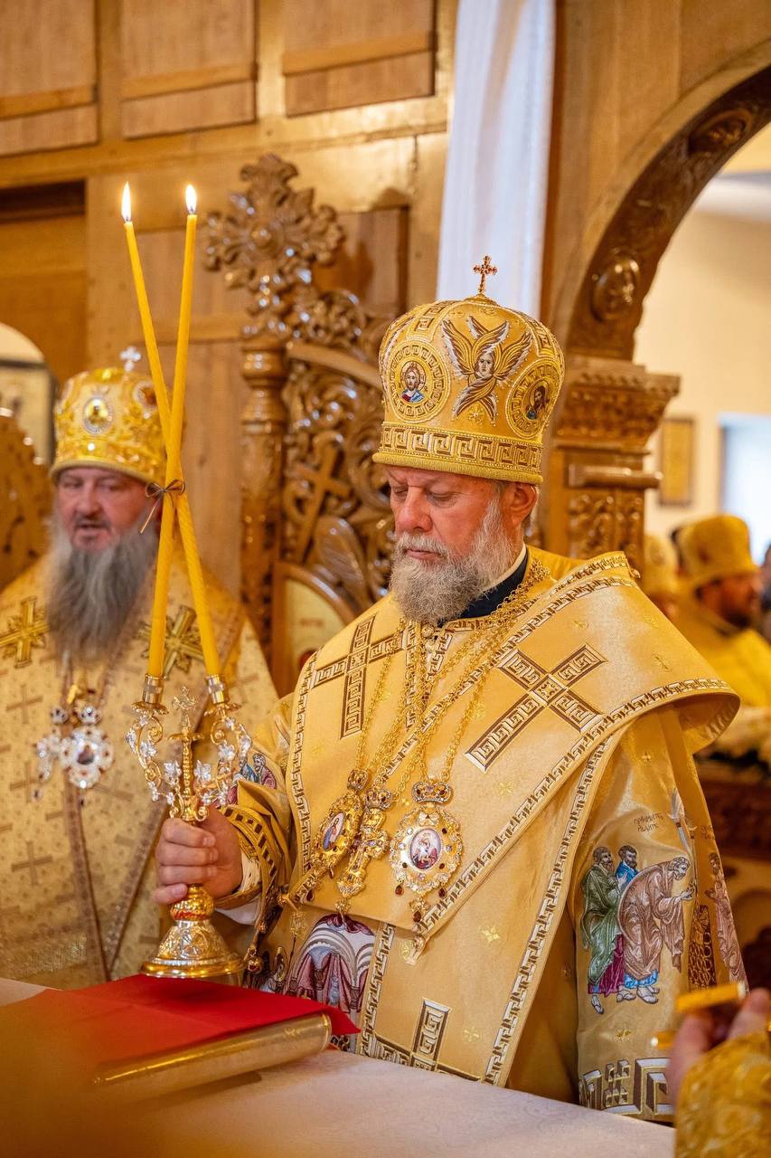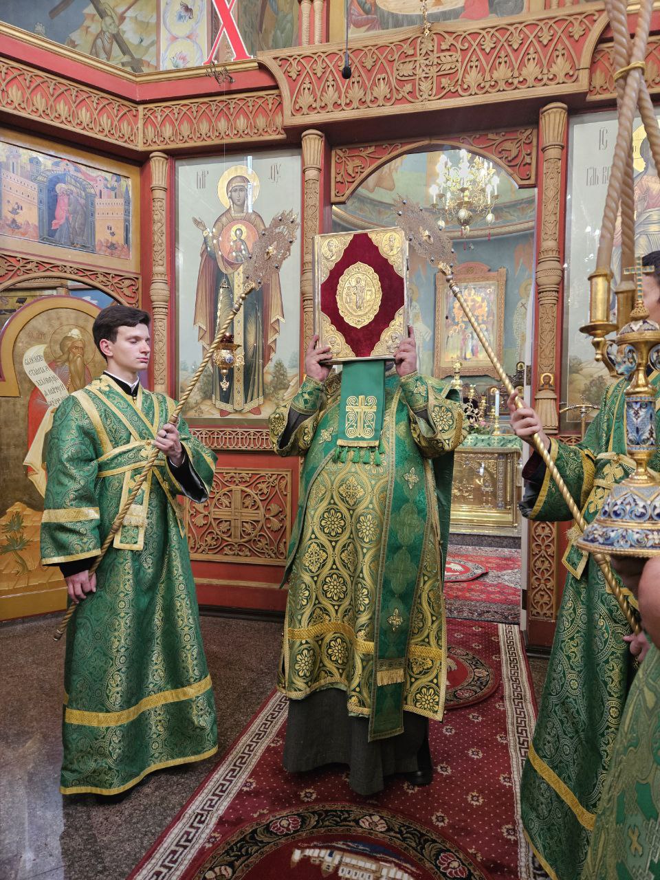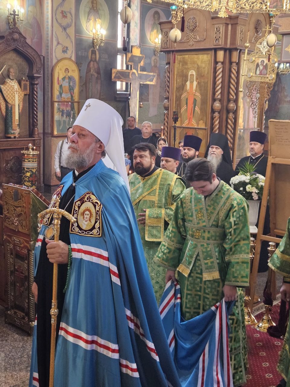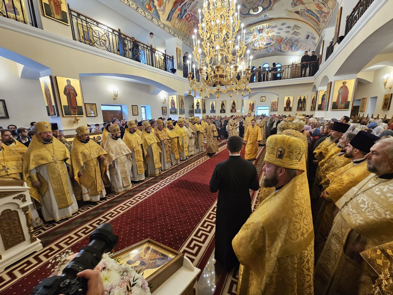 Высокопреосвященнейшему Владыке сослужили соборный причт, а также клирик храма Покрова Пресвятой Богородицы протоиерей Николай Чепель, настоятель храма Новомученников и исповедников Российских протоиерей Георгий Лесник и проходящий богослужебную практику иеродиакон Никанор (Цверкун).