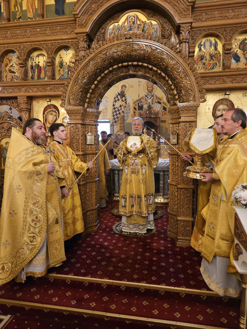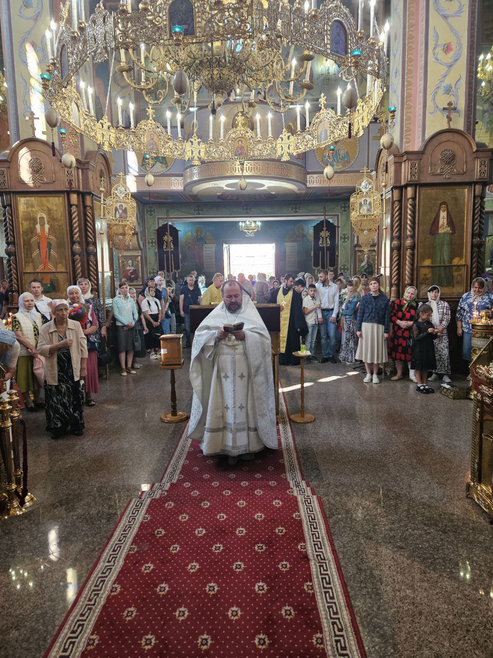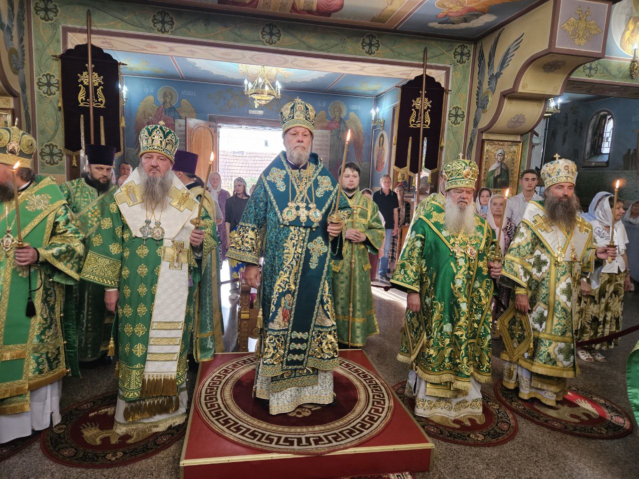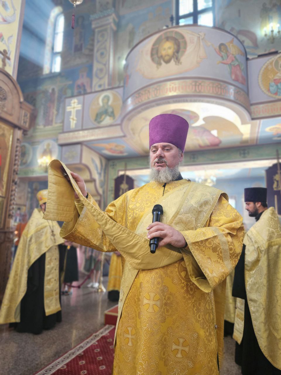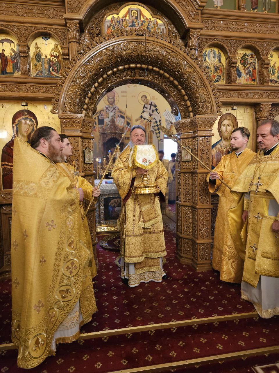 Высокопреосвященнейшему Владыке сослужили соборный причт, а также клирик храма Покрова Пресвятой Богородицы протоиерей Николай Чепель, настоятель храма Новомученников и исповедников Российских протоиерей Георгий Лесник и проходящий богослужебную практику иеродиакон Никанор (Цверкун).