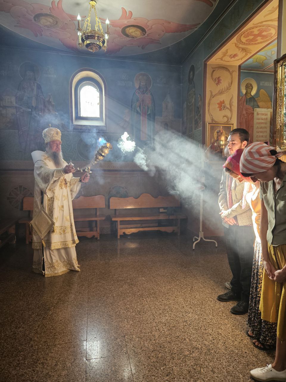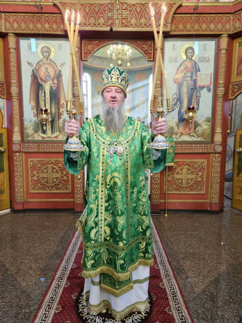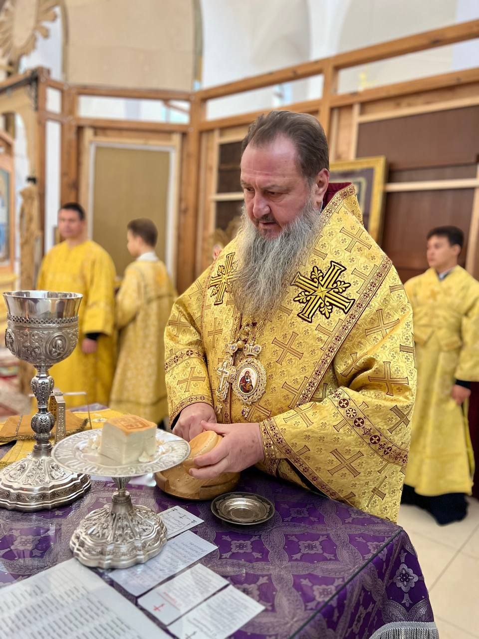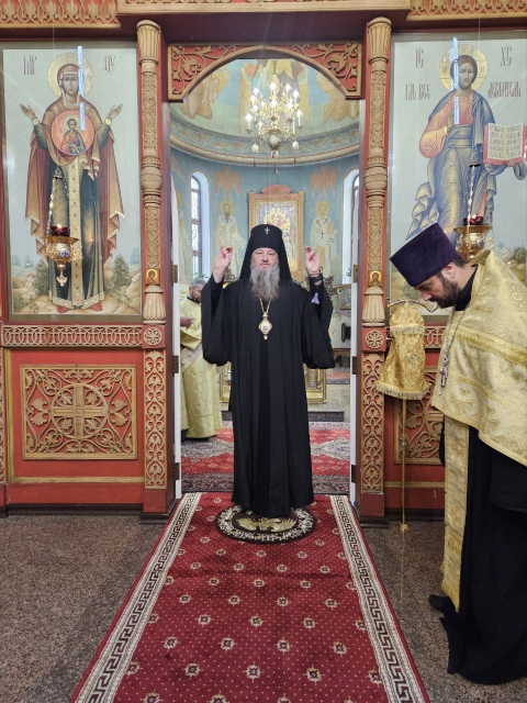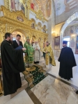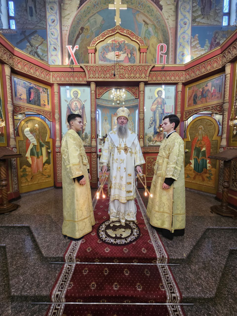 Высокопреосвященнейшему Владыке сослужили соборное духовенство, а также настоятель Благовещенского храма протоиерей Алексей Головаш и проходящий богослужебную практику иеромонах Никанор (Цверкун).