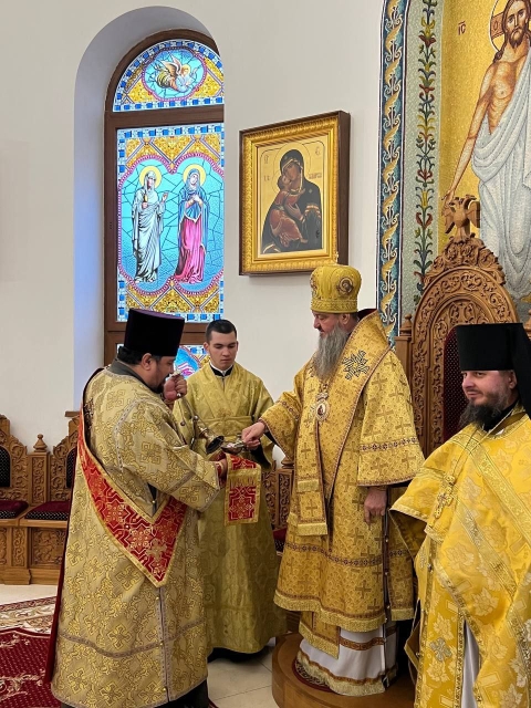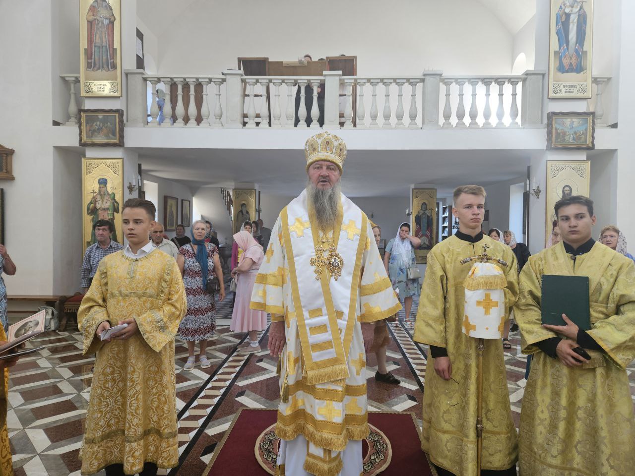 За богослужением Его Высокопреосвященству сослужили клирик собора протоиерей Анатолий Топал, проходящий богослужебную практику иеромонах Никанор (Цверкун) и клирик собора протодиакон Вячеслав Лукановский.