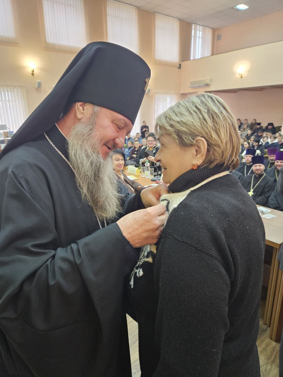 Высокопреосвященнейший владыка поприветствовал участников конференции и представил их вниманию доклад на тему «Создание в Приднестровье самостоятельной церковной структуры как историческая закономерность».По окончании своего выступления Его Высокопреосвященство вручил епархиальные награды директору Тираспольского объединенного музея А.А. Мельничук, которая была удостоена медали Покрова Пресвятой Богородицы, и директору университетского культурно-просветительского центра им. свв. равноапостольных Кирилла и Мефодия Р.В. Рошковану, удостоенному архиерейской грамоты.