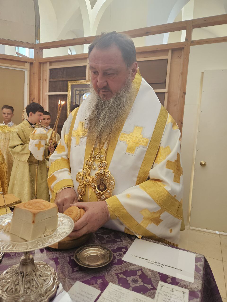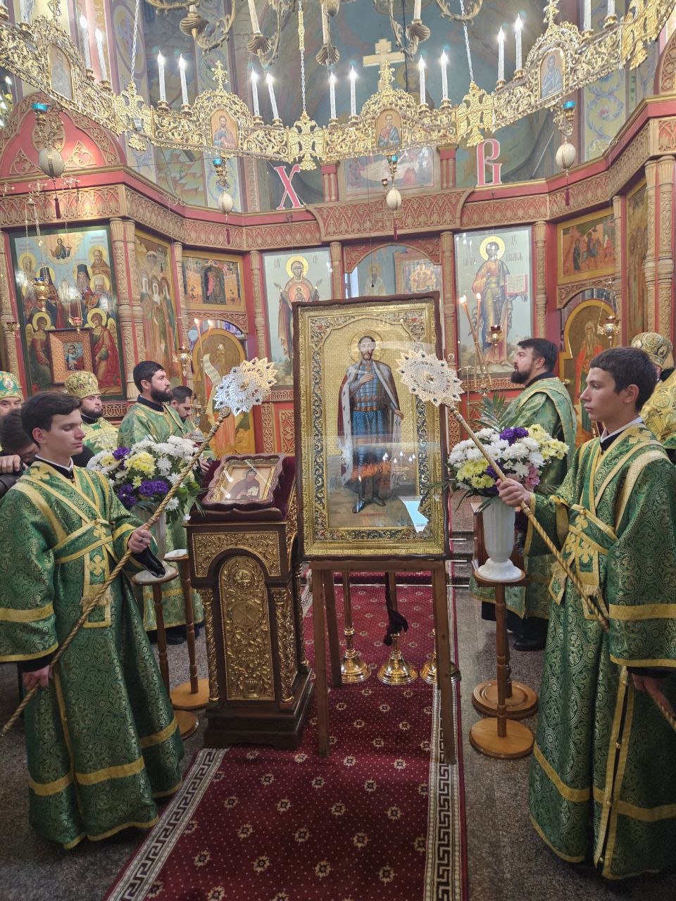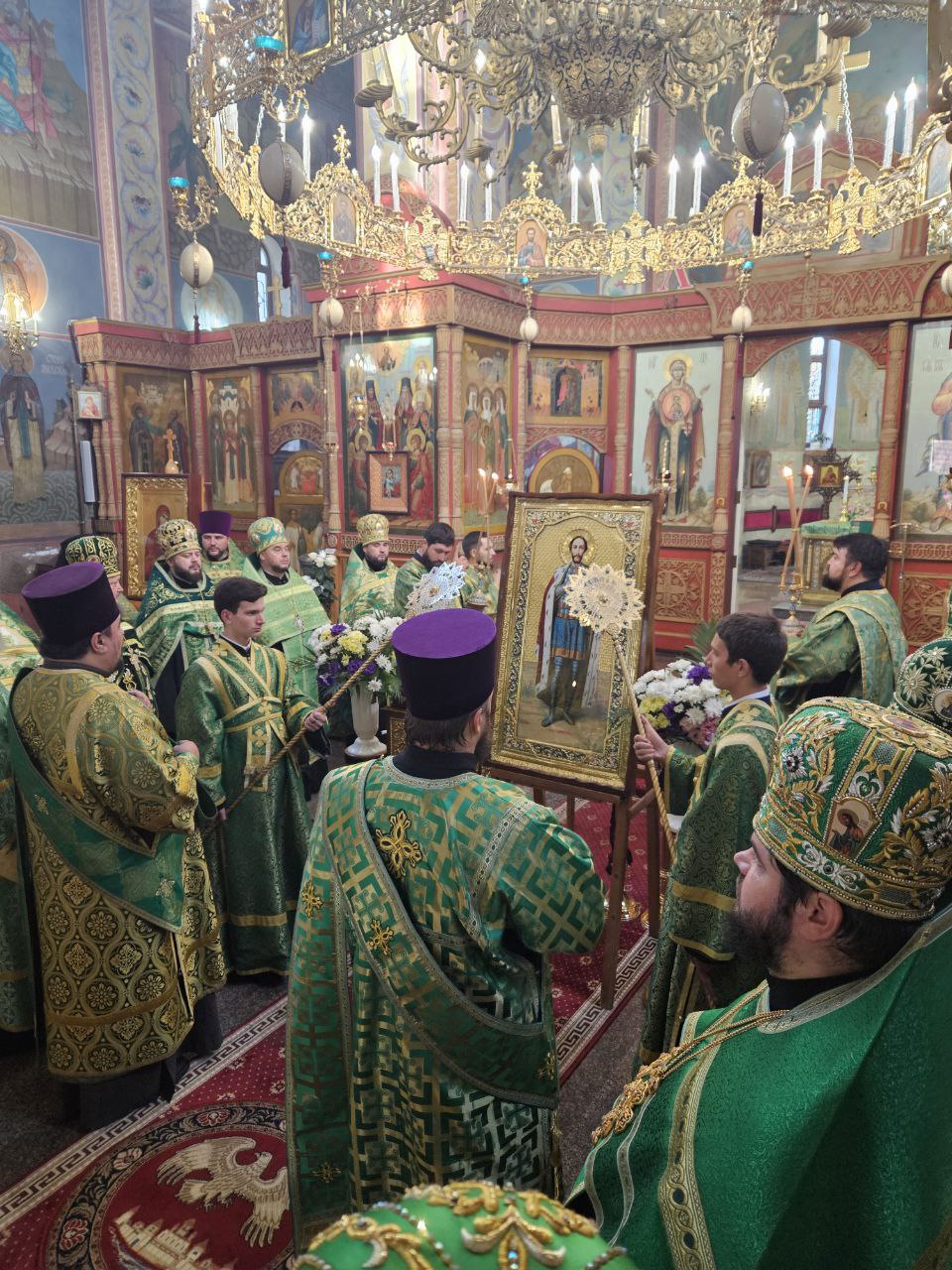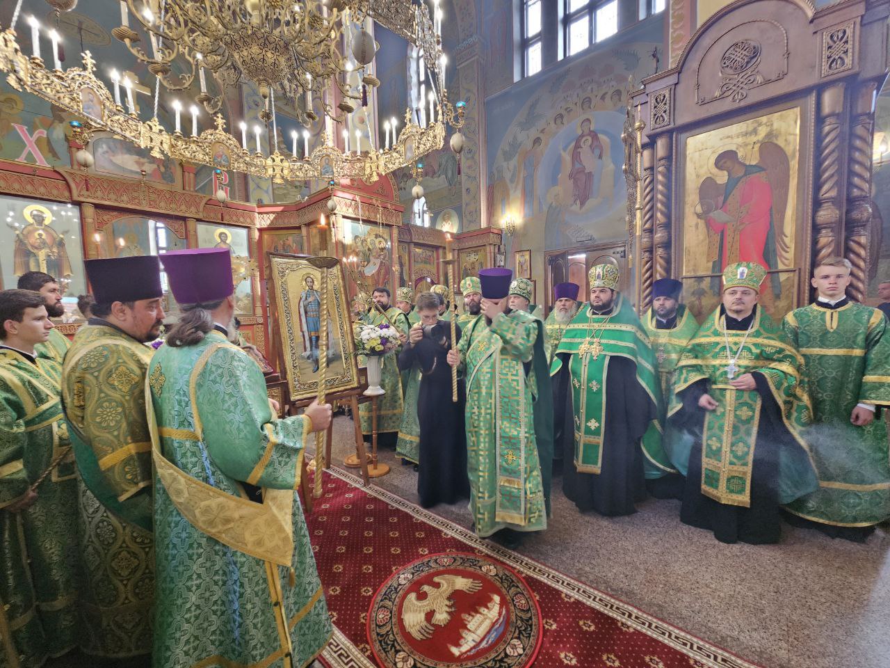 По отпусте Божественной литургии духовенство во главе с Владыкой совершило славление ныне прославляемому Церковью Архистратигу Божию Михаилу пред его честны́м образом.