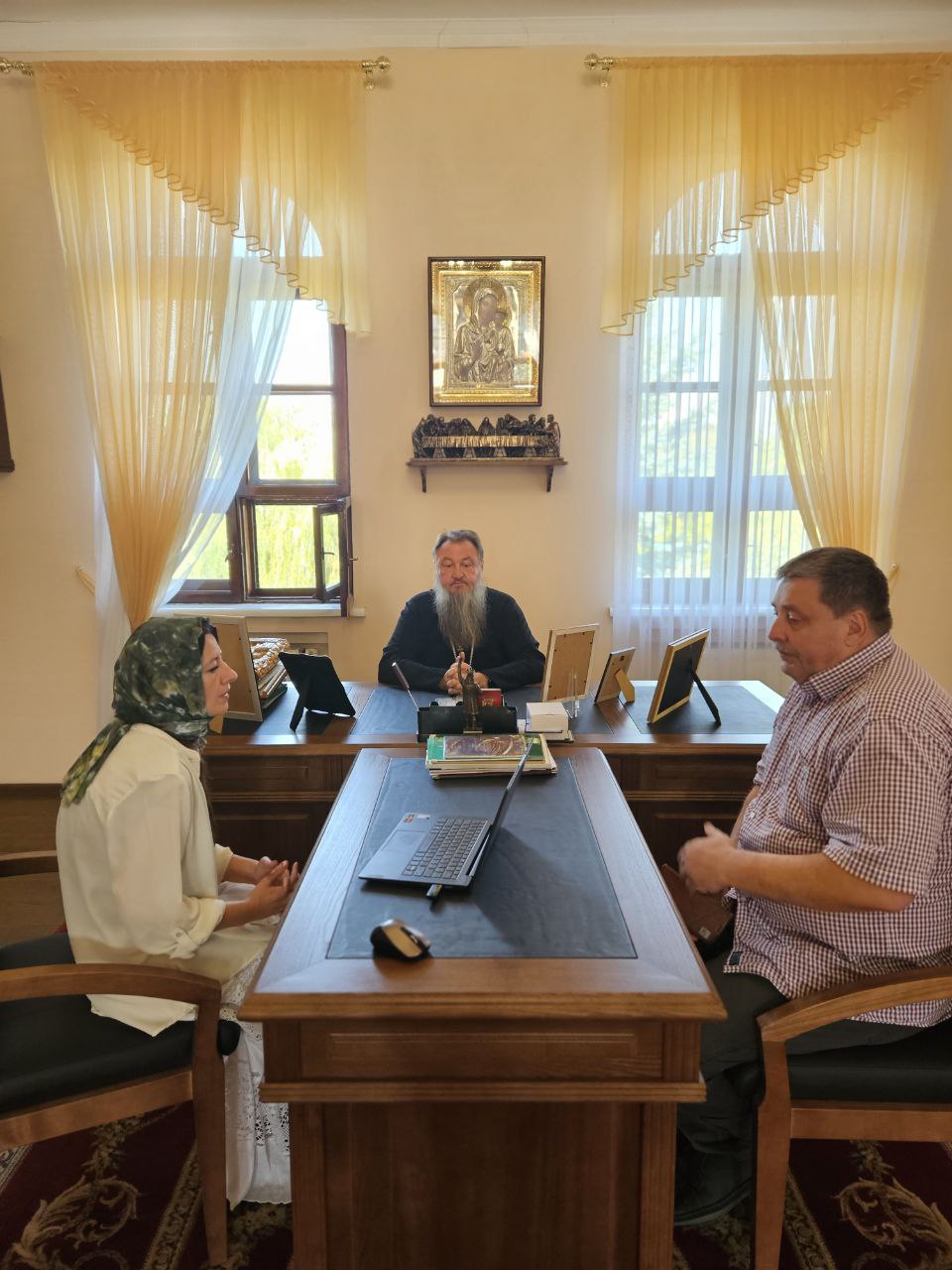 9 сентября в кабинете Управляющего епархией архиепископа Тираспольского и Дубоссарского Саввы под председательством Высокопреосвященнейшего Владыки состоялось рабочее совещание с участием советника Правящего Архиерея по вопросам культуры и просвещения, председателя епархиального Общественного совета по культуре кандидата культурологии Н. В. Дымченко и доцента кафедры архитектуры ПГУ, кандидата философских наук, члена Союза художников Приднестровья М. В. Корсак.