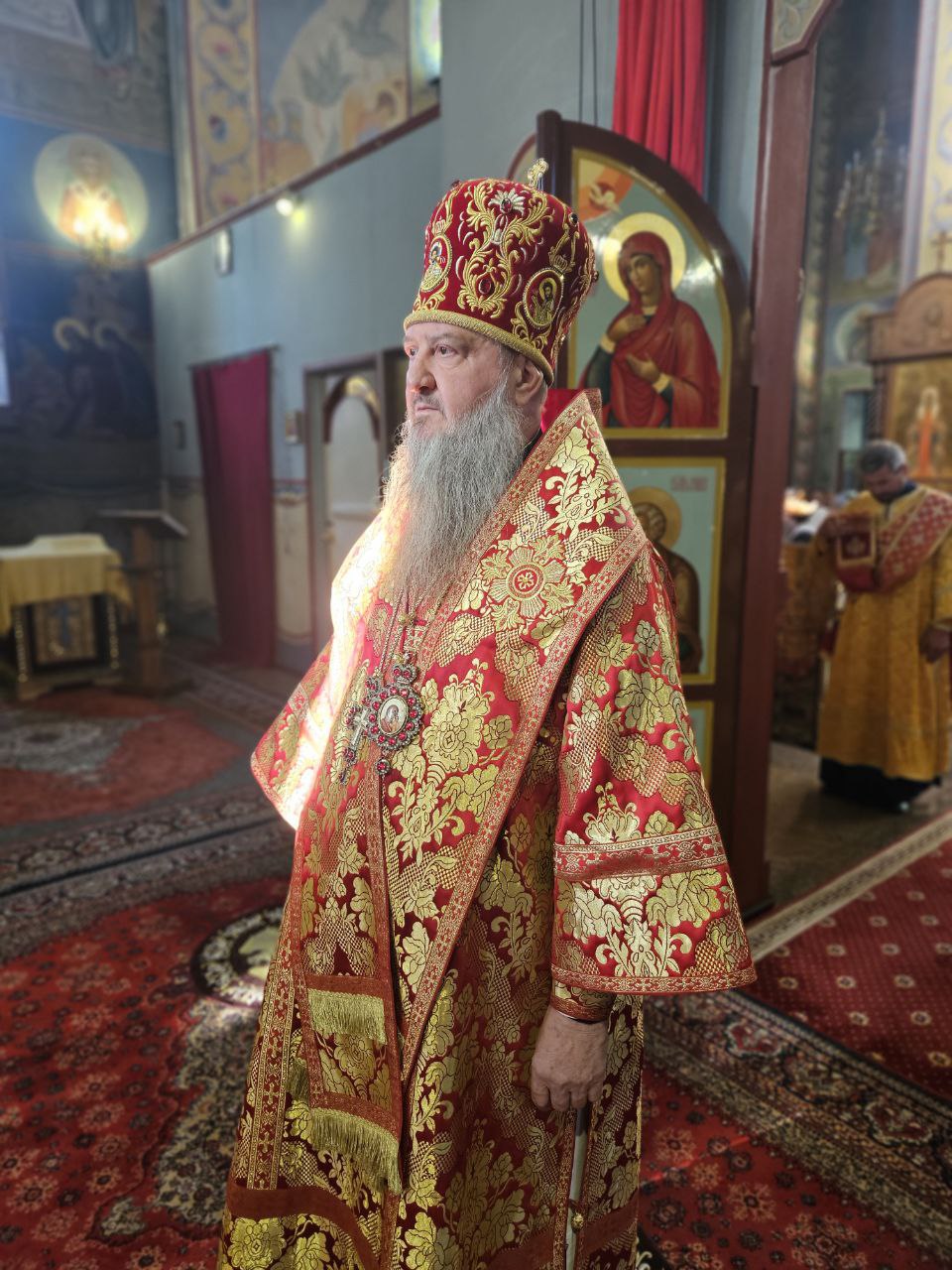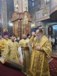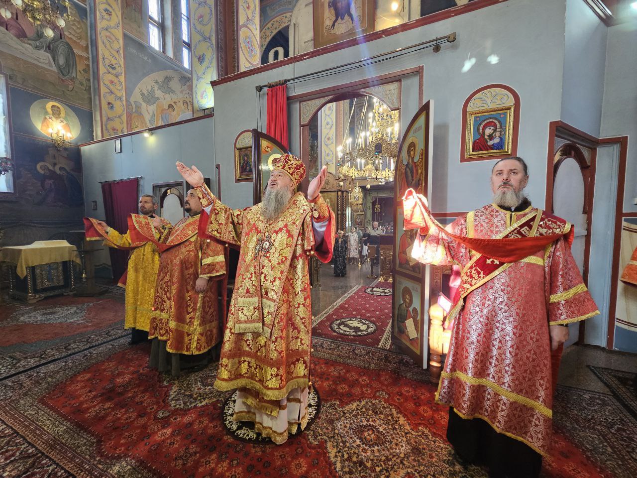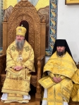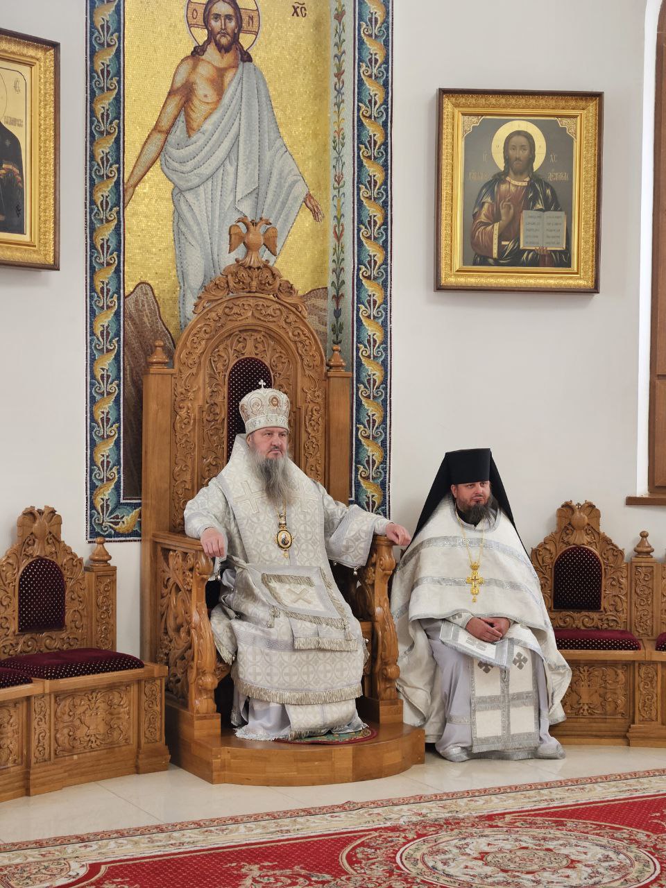 Его Высокопреосвященству сослужили ключарь кафедрального собора  протоиерей Павел Кузменых, клирик храма иеромонах Иоанн (Трайто) и клирик кафедрального собора протодиакон Сергий Афтени.