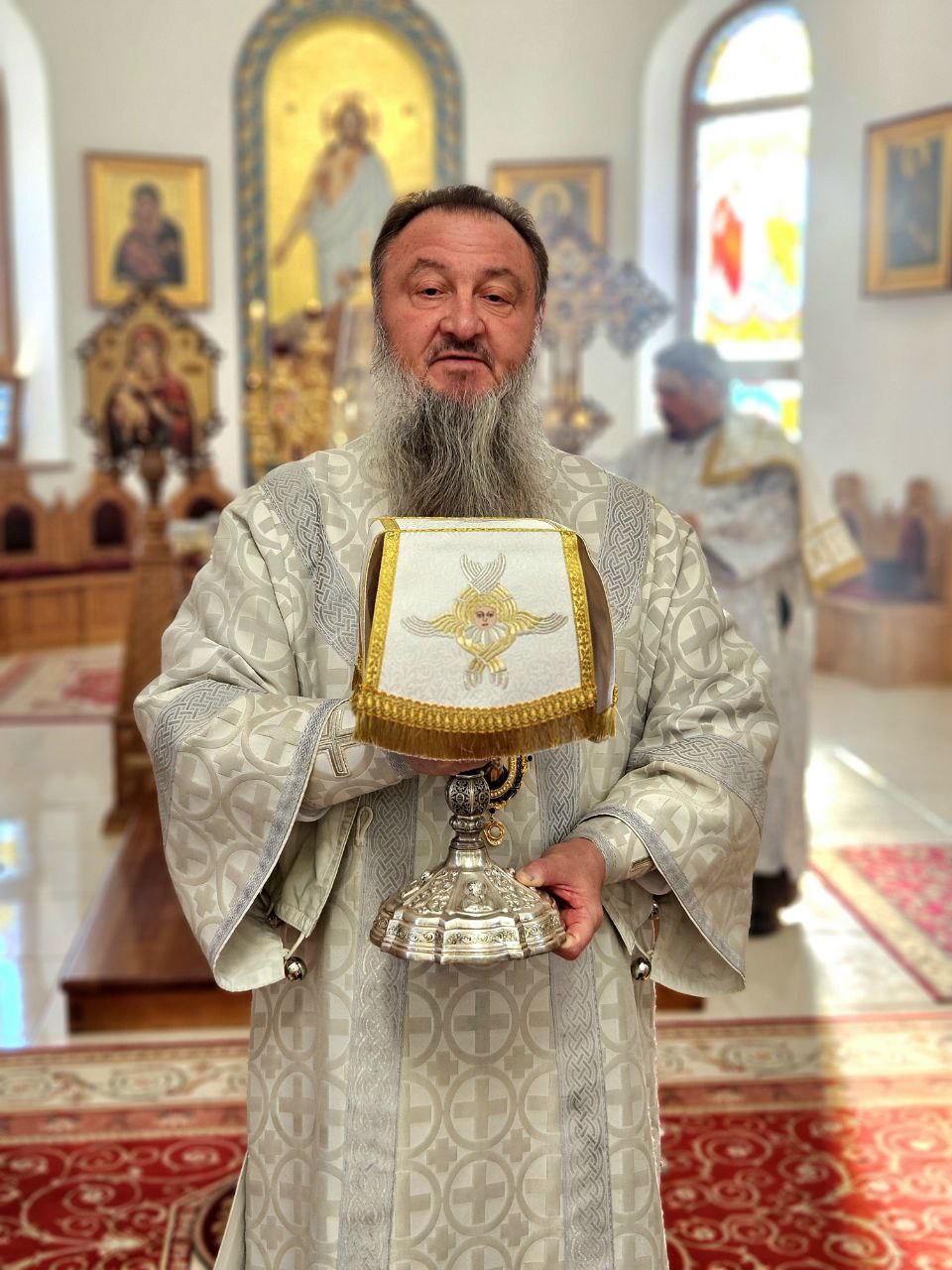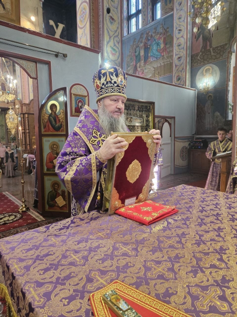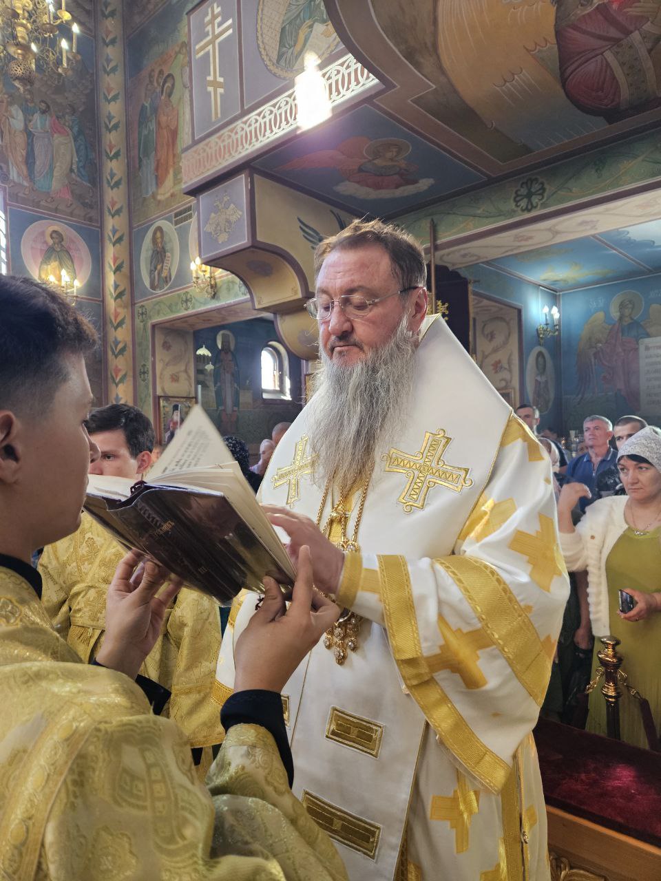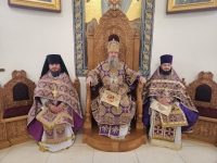 Его Высокопреосвященству сослужили ключарь кафедрального собора  протоиерей Павел Кузменых, клирик храма иеромонах Иоанн (Трайто) и клирик кафедрального собора протодиакон Сергий Афтени.