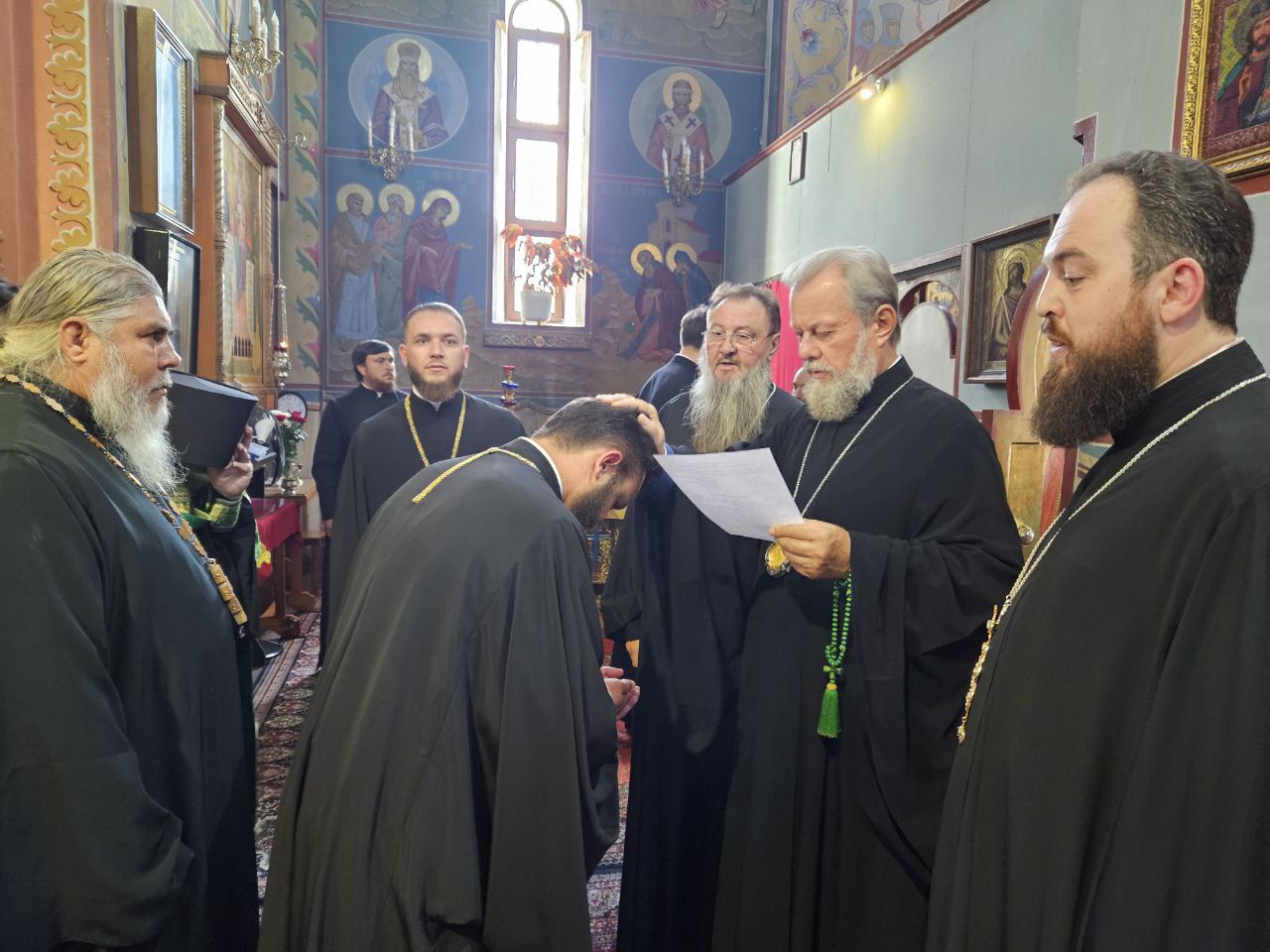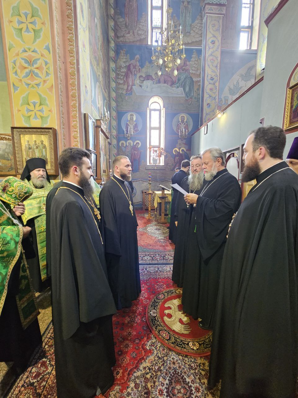 За богослужением, была совершена хиротония иеродиакона Никанора (Цверкуна) во иеромонаха.