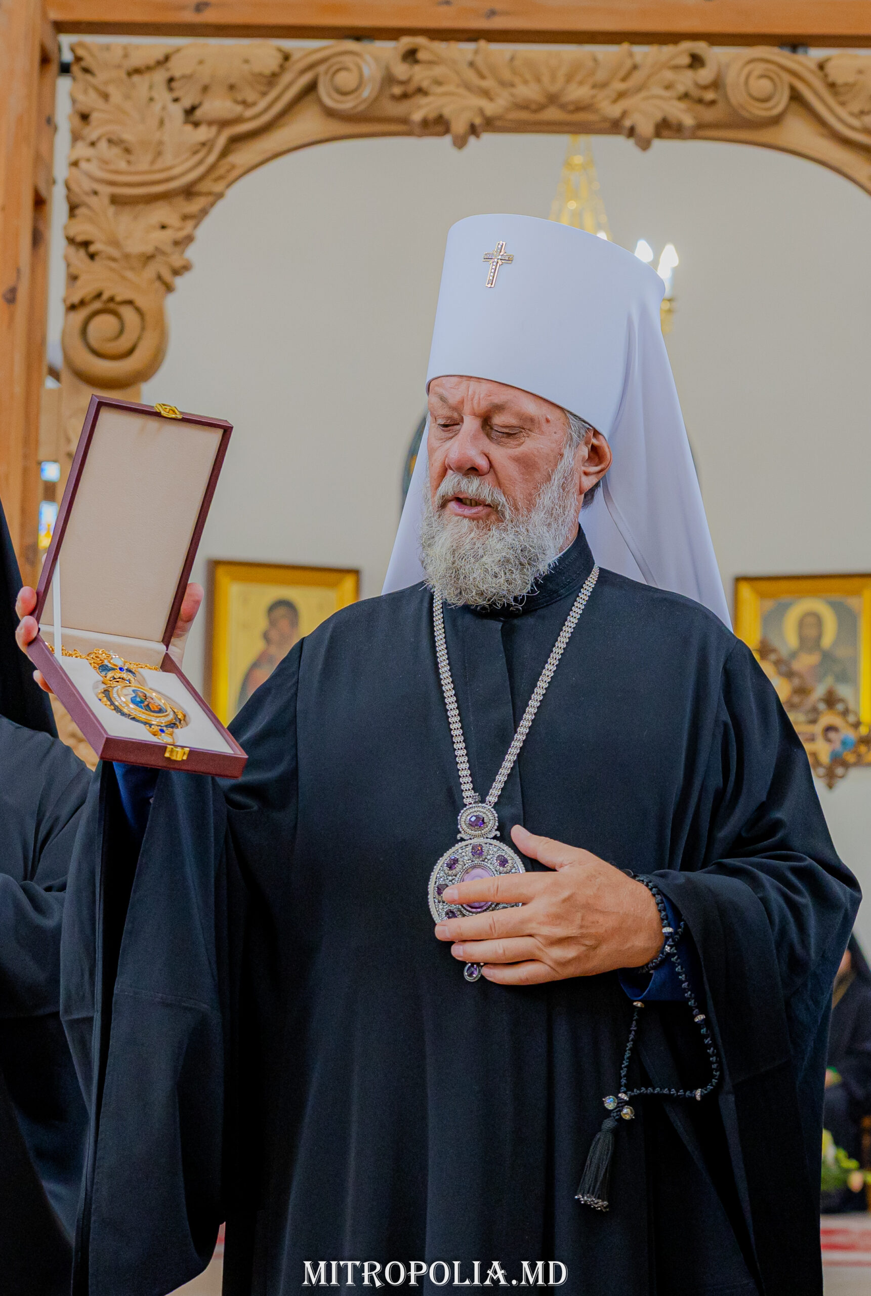 На полиелее права ношения митры были удостоены клирик Каменского благочиния протоиерей Сергий Мороз и клирик Центрального благочиния протоиерей Анатолий Каушан, а права ношения наперсного креста с украшениями – клирики Бендерского благочиния протоиерей Владимир Хлань и протоиерей Юлиан Лунгу.