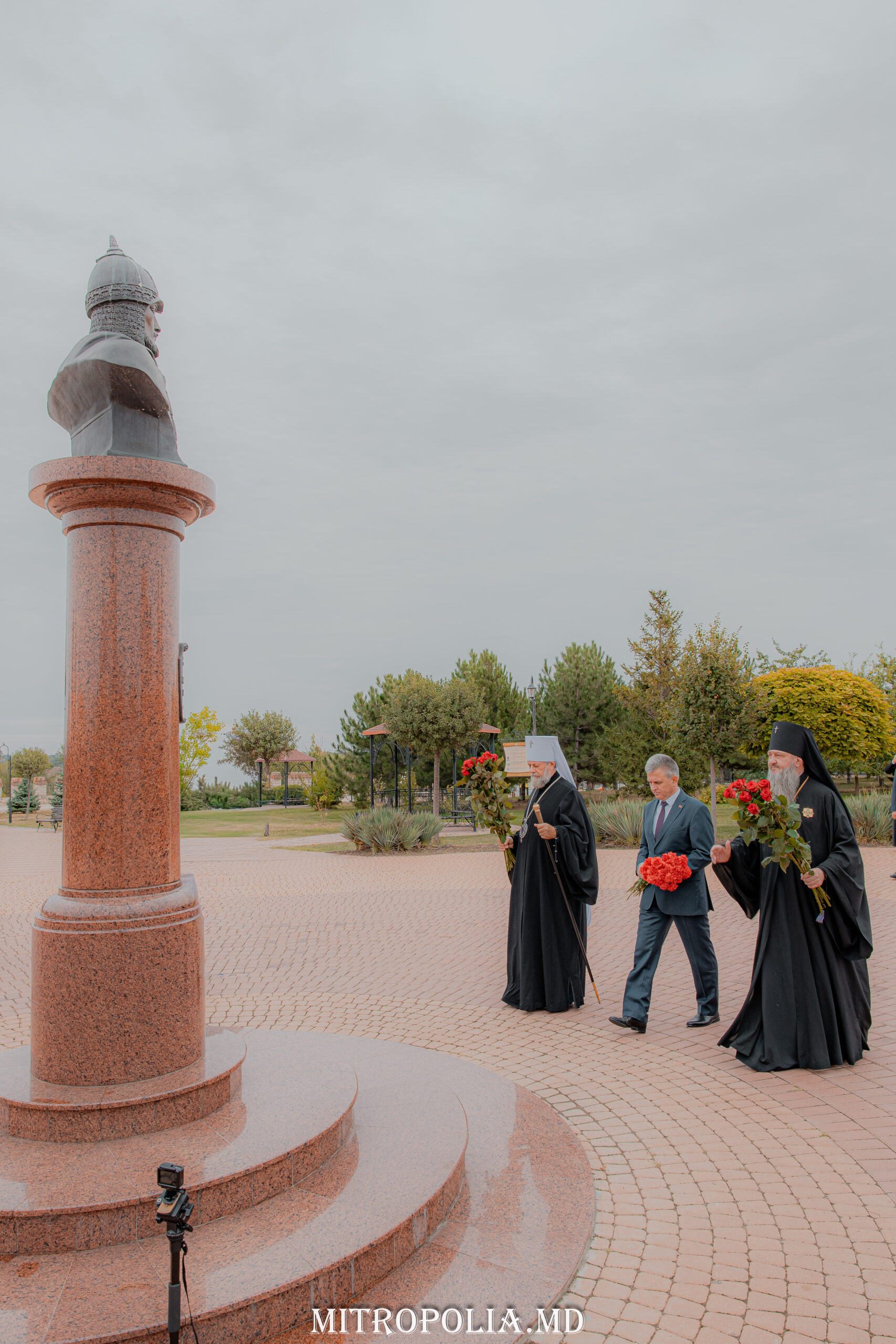 После Божественной литургии Владыка Митрополит, Архиепископ Савва, Президент ПМР Вадим Красносельский и гости праздника возложили цветы к бюсту святого благоверного князя Александра Невского, установленному на аллее Бендерской крепости.