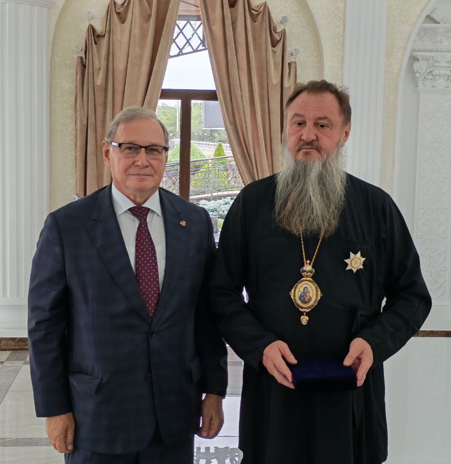 Высокопреосвященнейший Владыка Предстоятель преподнёс отмечающему ныне юбилей архиерейской хиротонии Архиепископу Савве орден Православной Церкви Молдовы свт. Гавриила (Бэнулеску-Бодони) I степени и панагию.