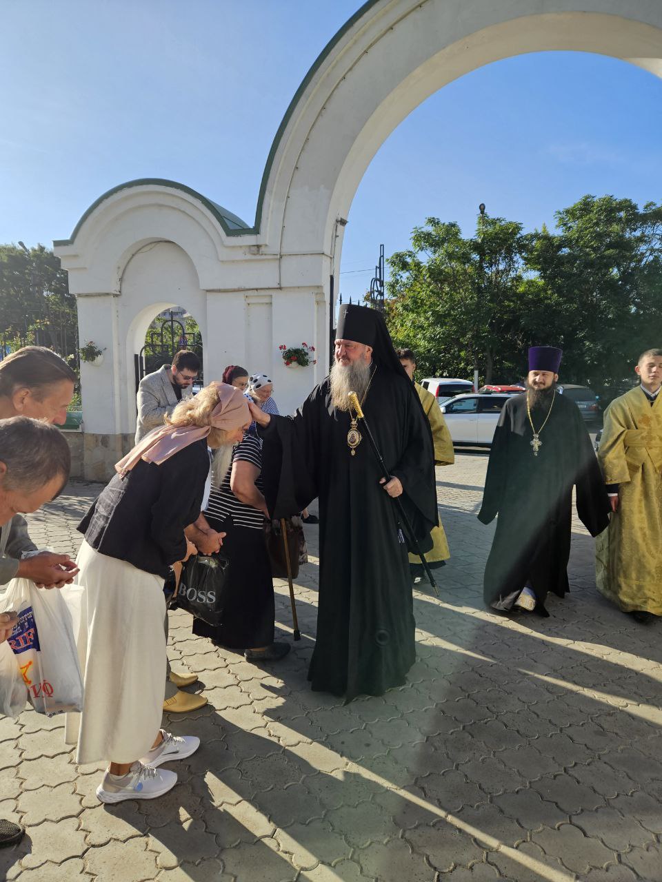 В завершение богослужения был совершён крестный ход вокруг храма с окроплением верующих святой водой.После богослужения архиепископ Савва обратился к верующим с архипастырским словом, в котором подчеркнул,что праздник Воздвижения, посвященный Кресту Христову, выражает литургический (богослужебный) аспект почитания христианами Голгофского Креста как орудия спасения человечества.