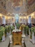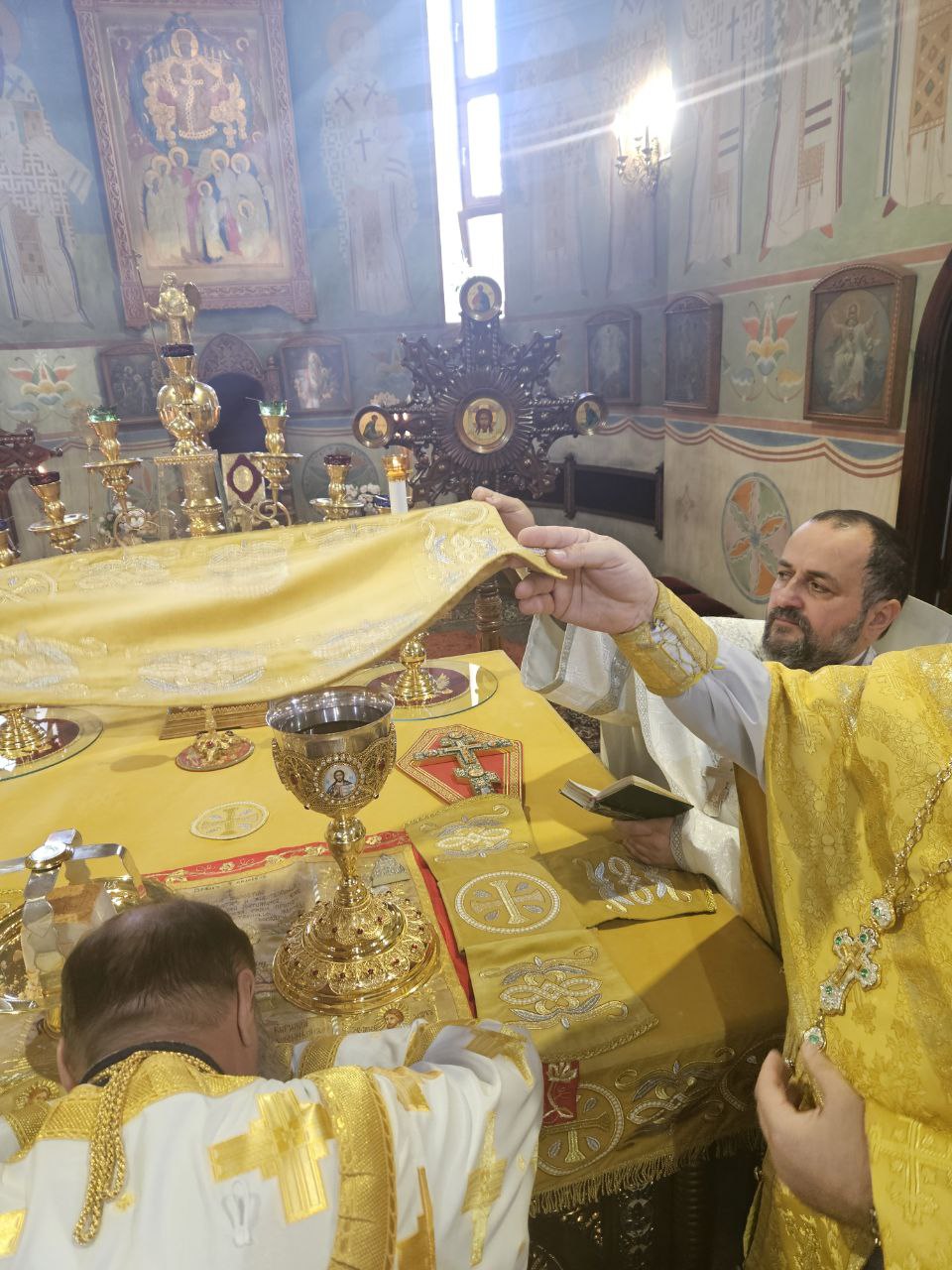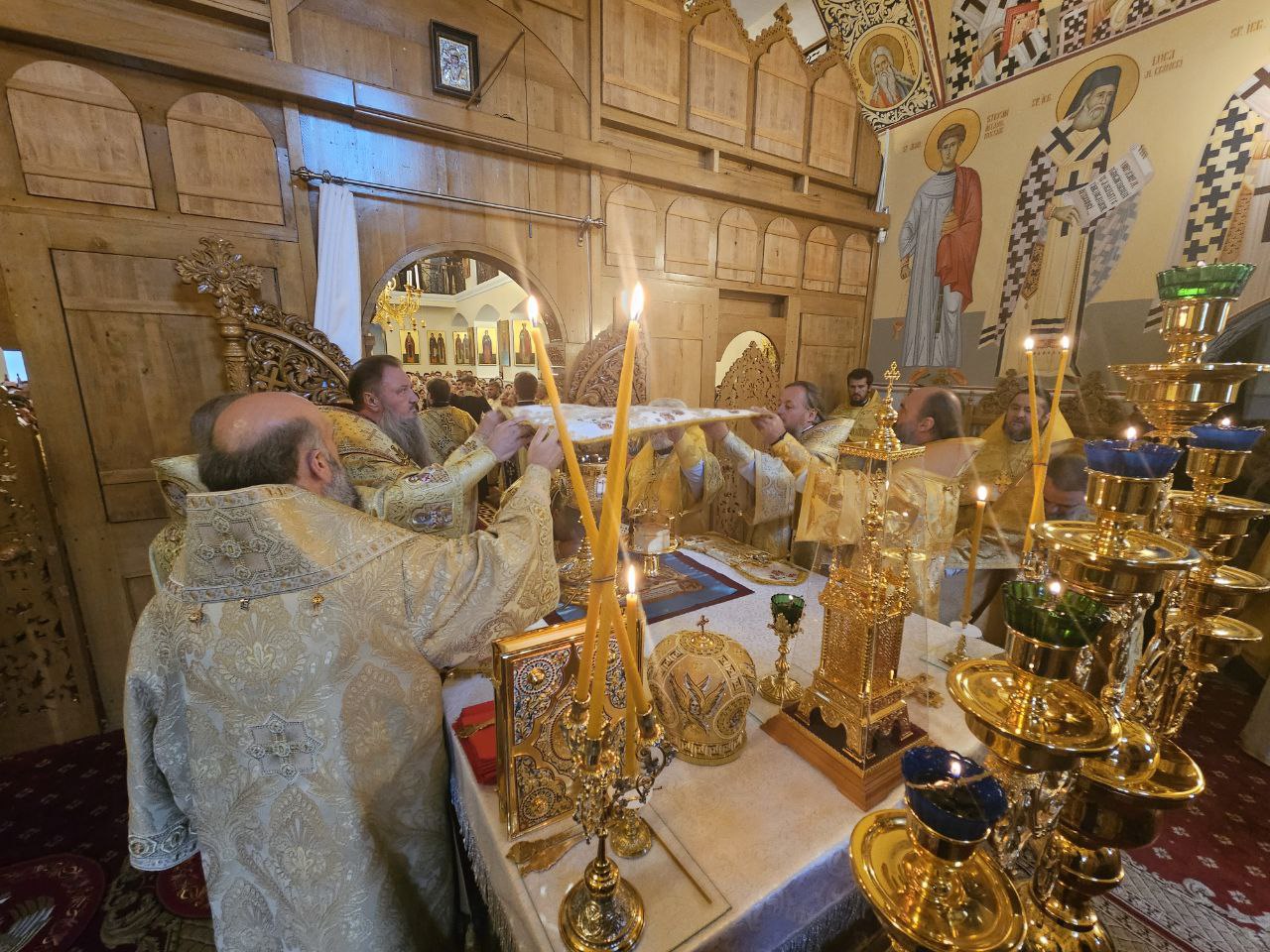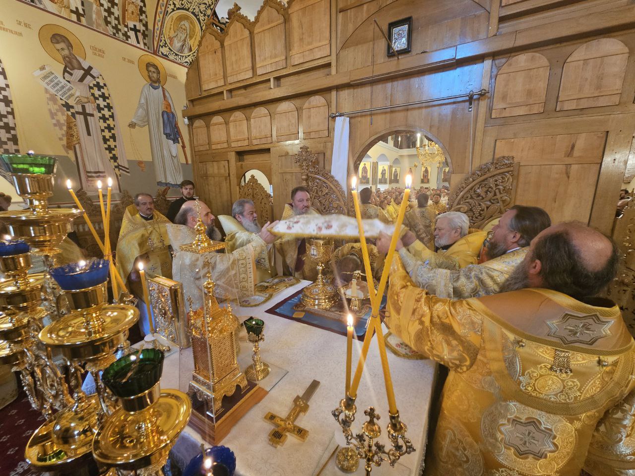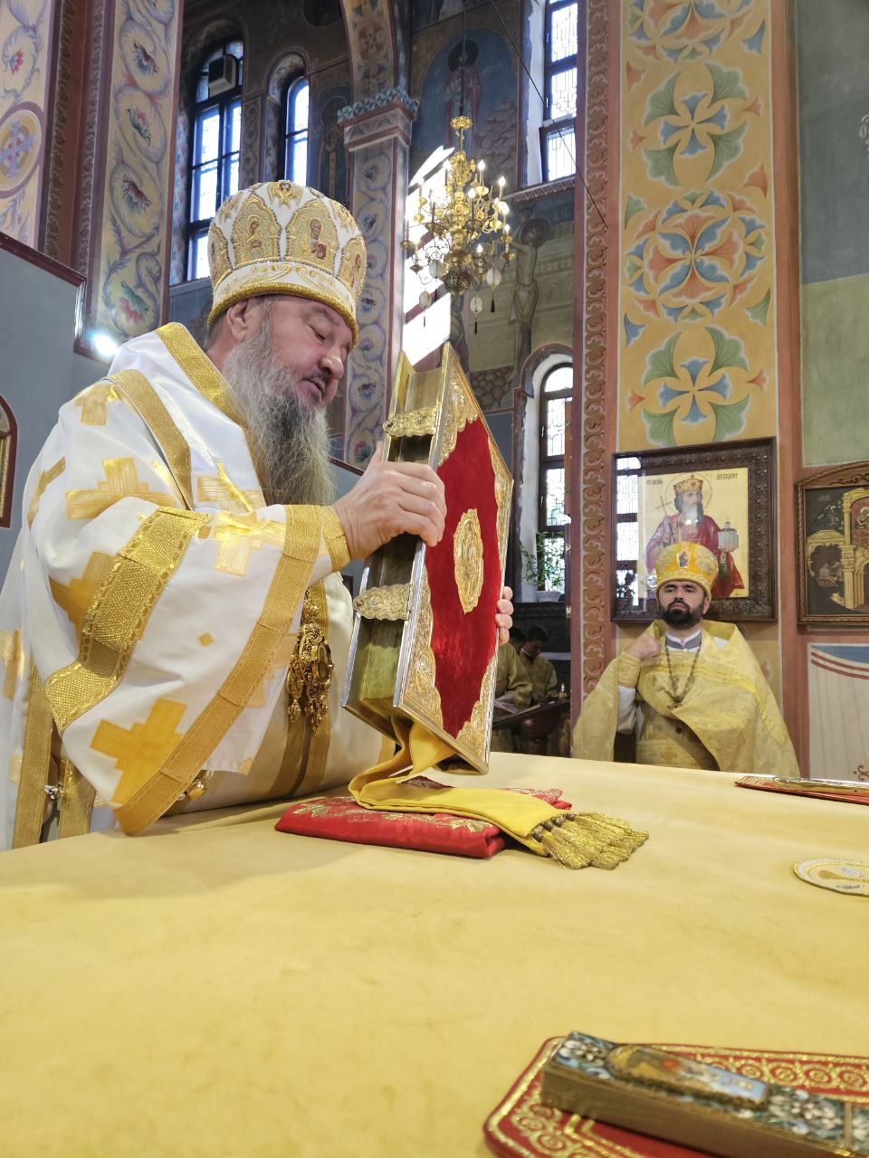По отпусте литургии было совершено славление пред святыми и многоцелебными мощами угодника Божия святителя Дионисия, отошедшего ко Господу 17 сентября 1943 года и прославленного в лике святых решением Священного Синода Румынской Православной Церкви от 25 октября 2018 года.