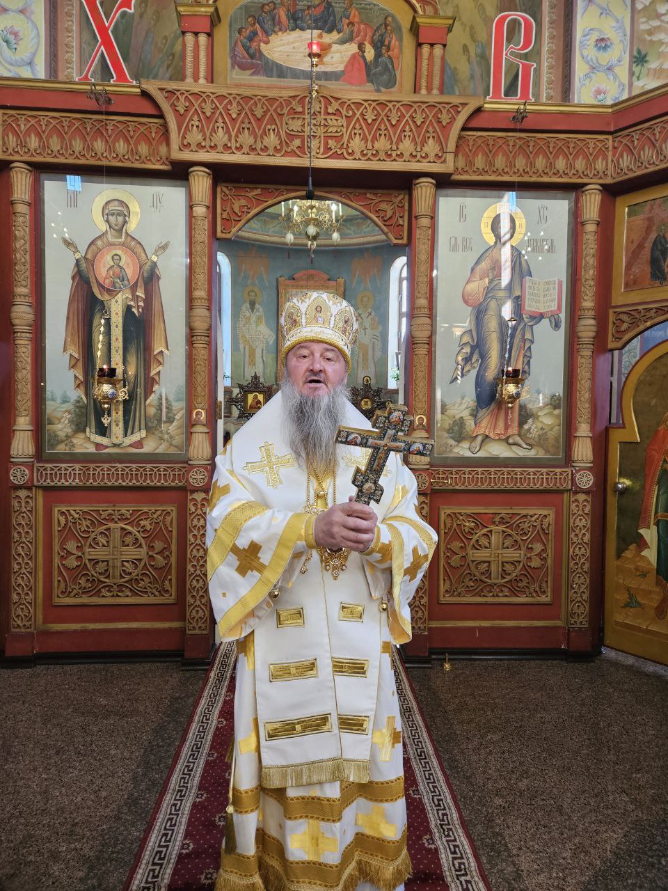 По отпусте Божественной литургии было совершено славление Честному и Животворящему Кресту Господню. Затем Его Высокопреосвященство обратился к молящимся с архипастырским словом.