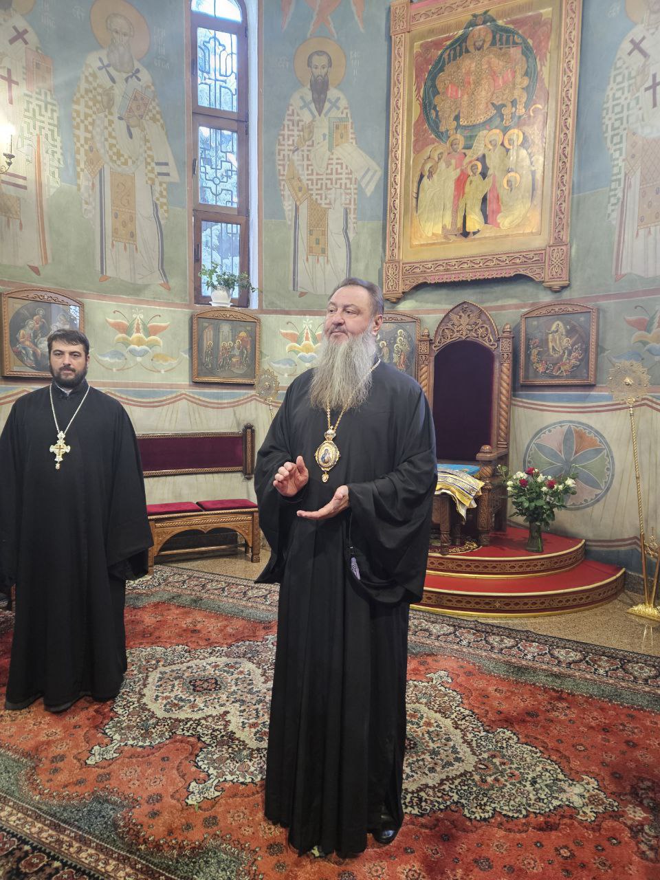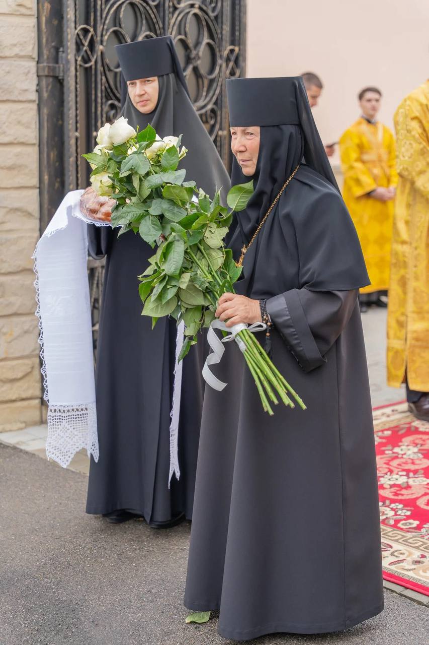 У святых врат обители Предстоятеля Православной Церкви Молдовы встречали Высокопреосвященные архиепископы и Преосвященные епископы, духовенство, а также настоятельница Свято-Георгиевского Сурученского монастыря игумения Епистимия (Гончаренко) с сёстрами.
