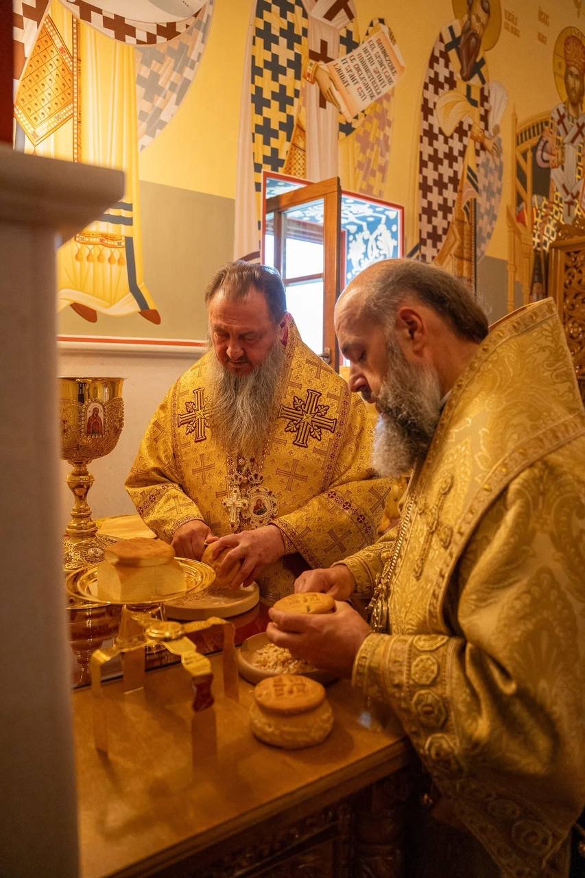 Высокопреосвященнейшему Владыке сослужили настоятель храма прп. Параскевы Сербской в селе Терновка протоиерей Василий Кристя, клирик собора протоиерей Александр Фёдоров, соборный ключарь протоиерей Павел Кузменых, соборные клирики протодиакон Сергий Афтени и диакон Геннадий Гнатюк, клирик храма прп. Параскевы Сербской в селе Терновка диакон Торнике Квариани.