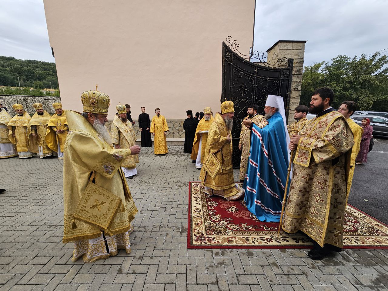 Его Высокопреосвященство встретил у святых врат собора Предстоятеля Православной Церкви Молдовы Митрополита Кишиневского и всея Молдовы Владимира.