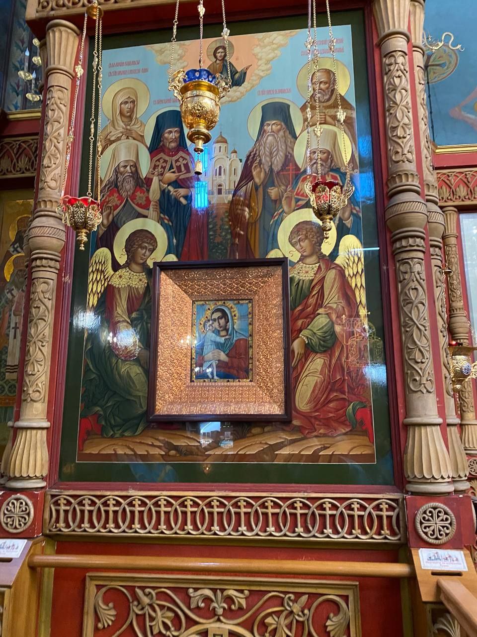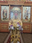 По завершение Божественной Литургии было совершено славление перед святыми образами апостола и евангелиста Иоанна Богослова и святителя Тихона, Патриарха Московского и всея России.