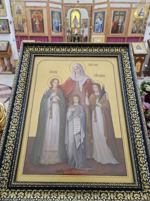В завершение Божественной Литургии перед находящимся в центре храма до отдания праздника Воздвижения Креста Господня украшенным цветами Распятием и иконой св. мцц. Веры, Надежды, Любови и матери их Софии было совершено славление, после чего Правящий Архиерей обратился к пастве со словом назидания, приведя в пример жизнь и страданий святых мучениц и их славной матери, память которых совершается в сей день.
