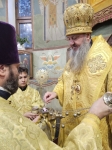 На полиелее Правящий Архиерей прочитал евангельское зачало, положенное на всех вечерних богослужениях, совершаемых в честь Божией Матери. Затем Владыка Савва обратился к прихожанам со словом назидания и помазал освящённым елеем духовенство и мирян.