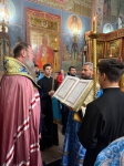 На малом входе за труды во славу Святой Матери Церкви права ношения наперсного креста с украшениями был удостоен клирик Воздвиженского прихода иеромонах Иоанн (Трайто).