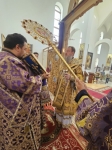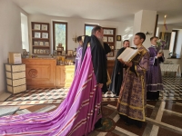 Его Высокопреосвященство также огласил расписание богослужений на предстоящую седмицу и совершил помазание освящённым елеем духовенства и всех молившихся за богослужением.